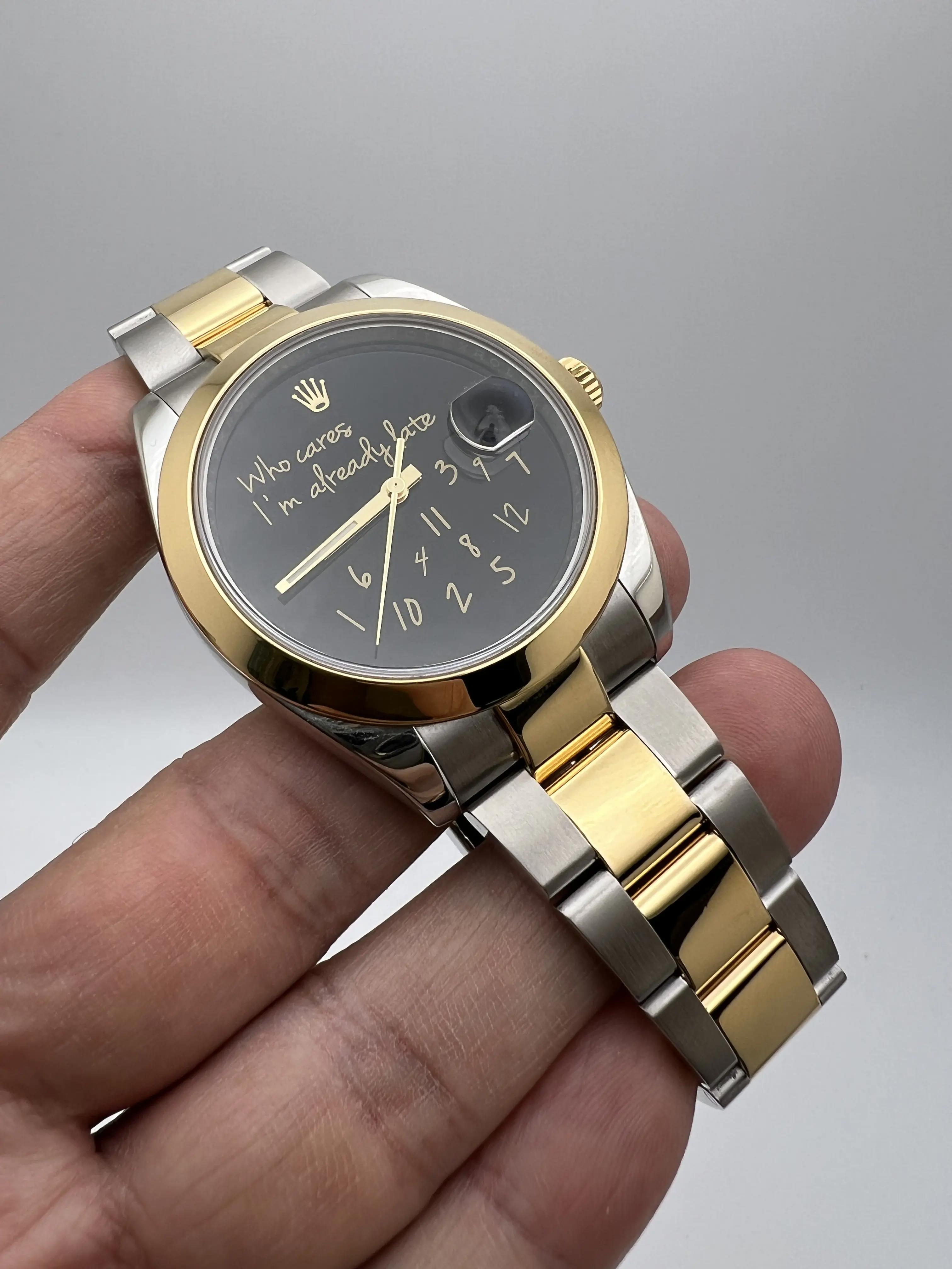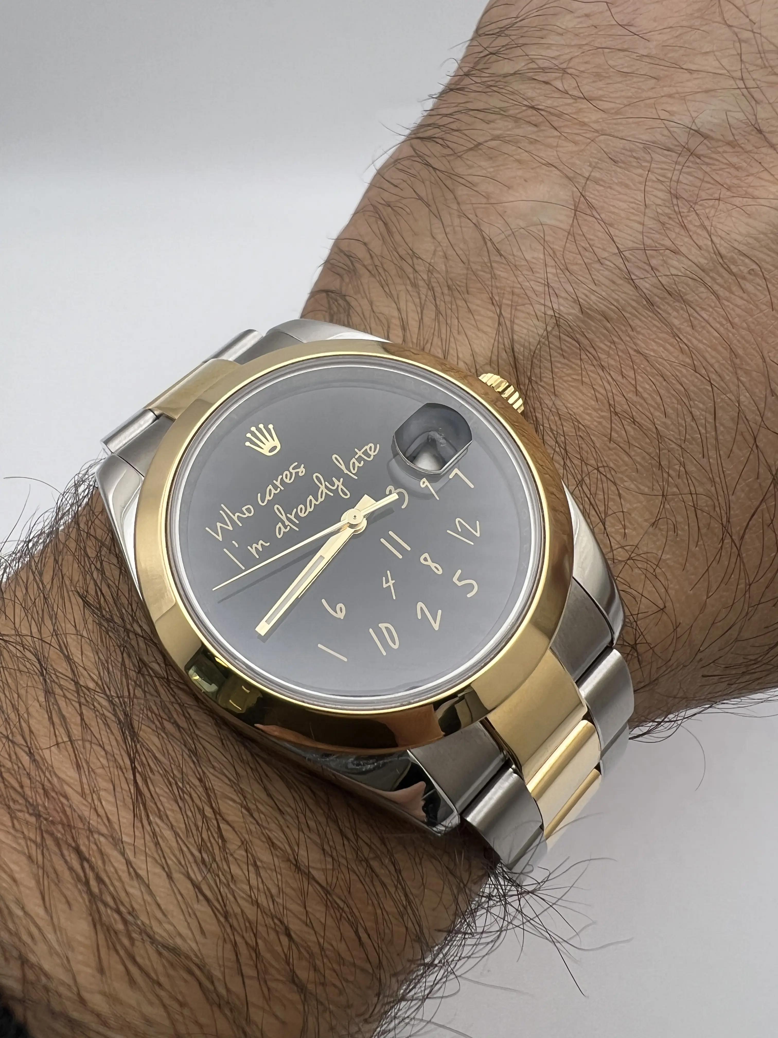 Rolex Datejust 41 126303 18K Custom Who Cares I'm Already Late Black Dial Watch