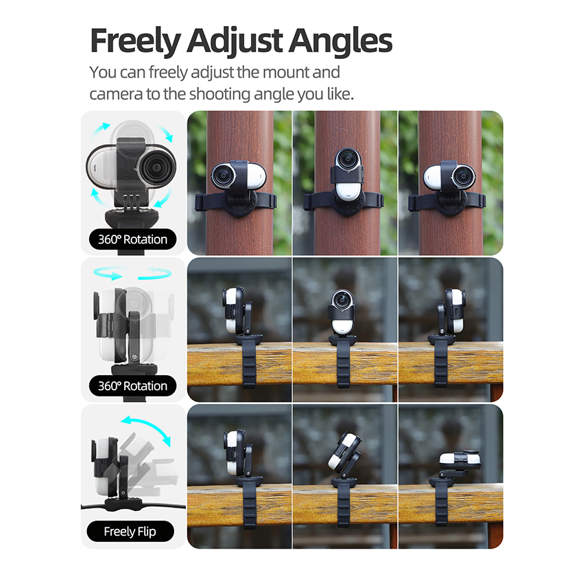 l Shooting angle, any adjustment. The bracket can be rotated 360° horizontally, flip back and forth freely, and the camera can be rotated 360°