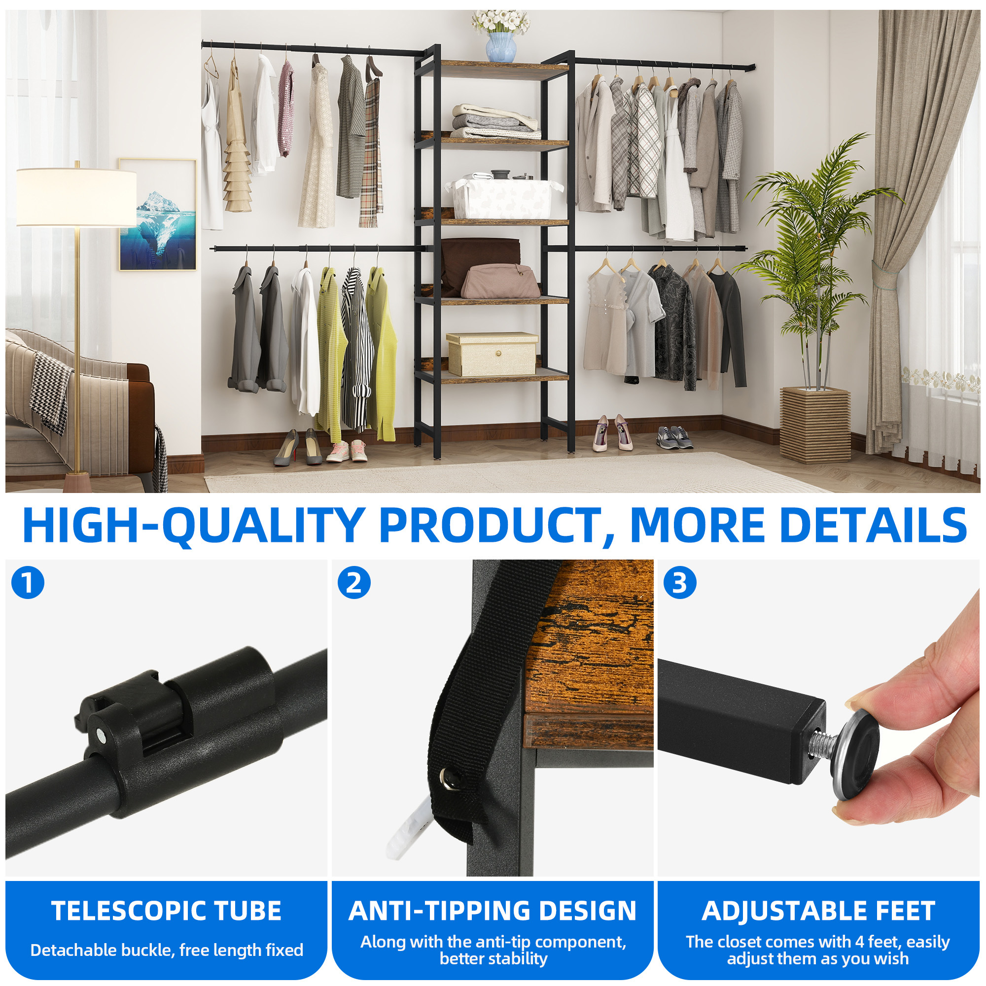 ✨Fully Adjustable Garment Rack: