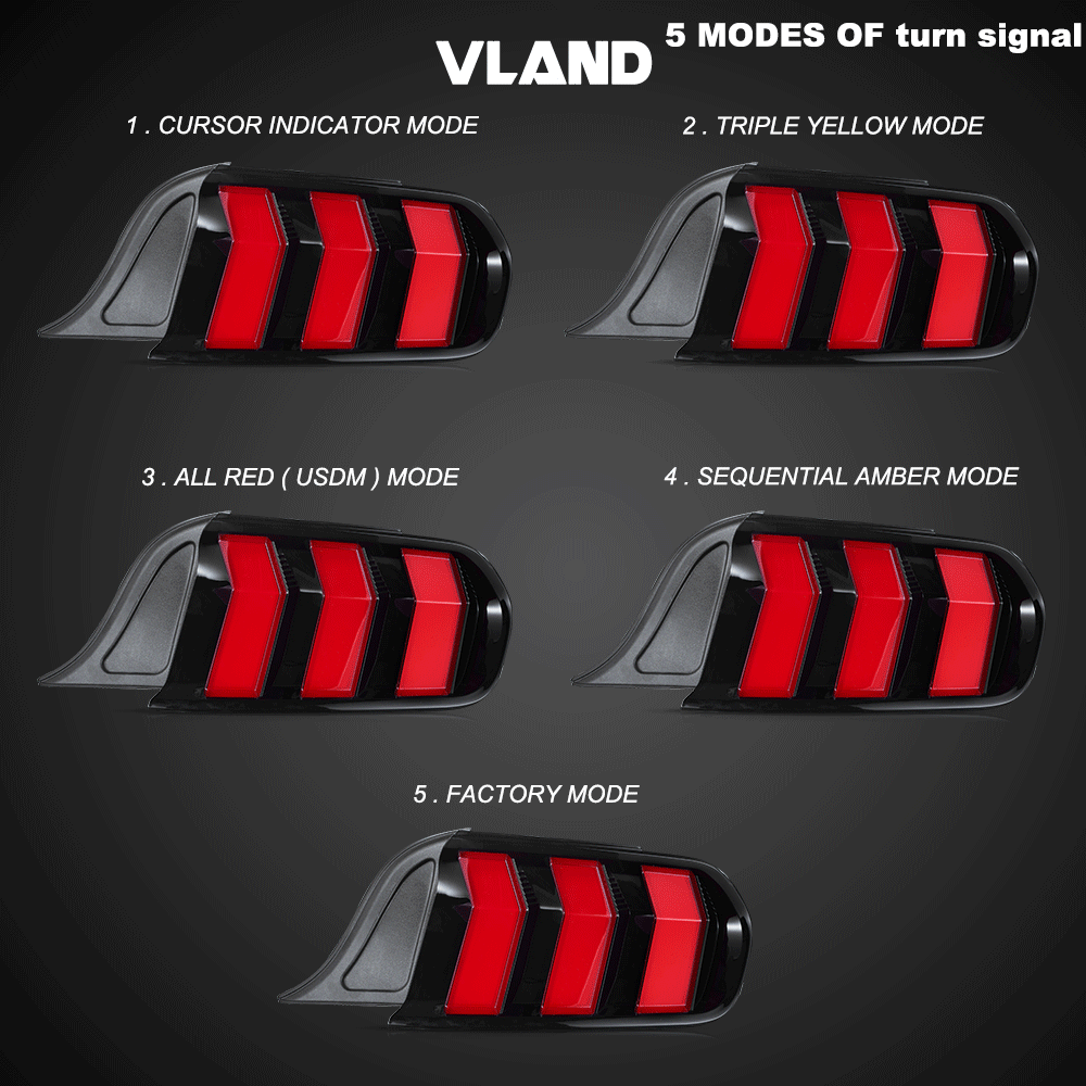 Turn Signals: LED (Amber(Yellow)/Red [switchable]. With Sequential Indicators)