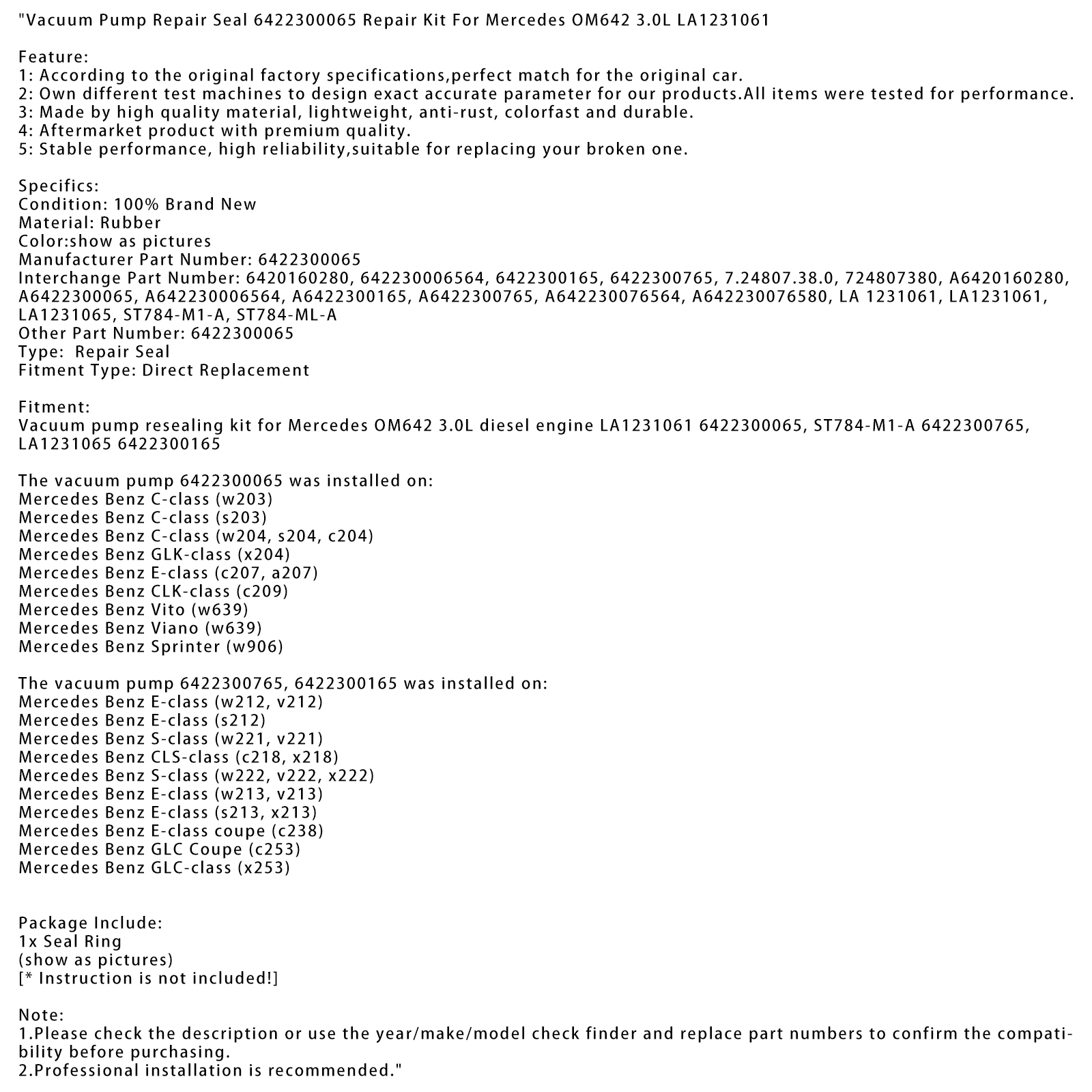 Vacuum Pump Repair Seal 6422300065 Repair Kit For Mercedes OM642 3.0L LA1231061