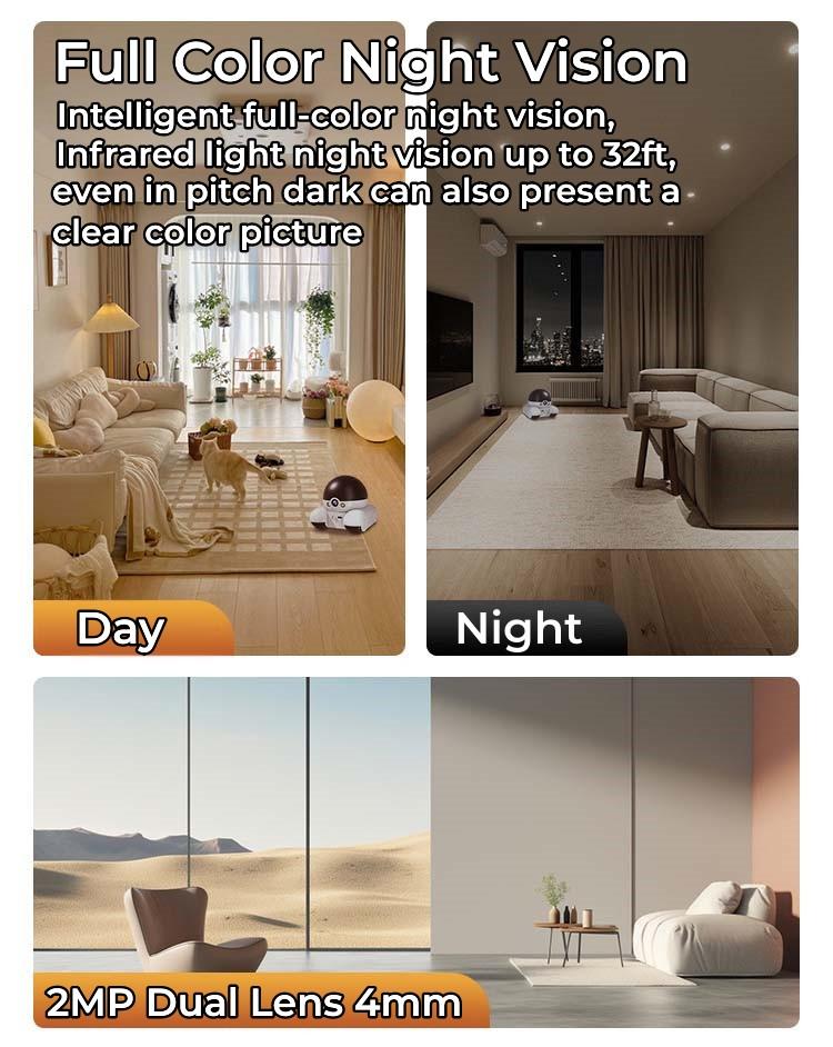 | Smart Wifi APP Movable Pet Cat 2MP Dual Lens Dual Screen Action Robot Camera |