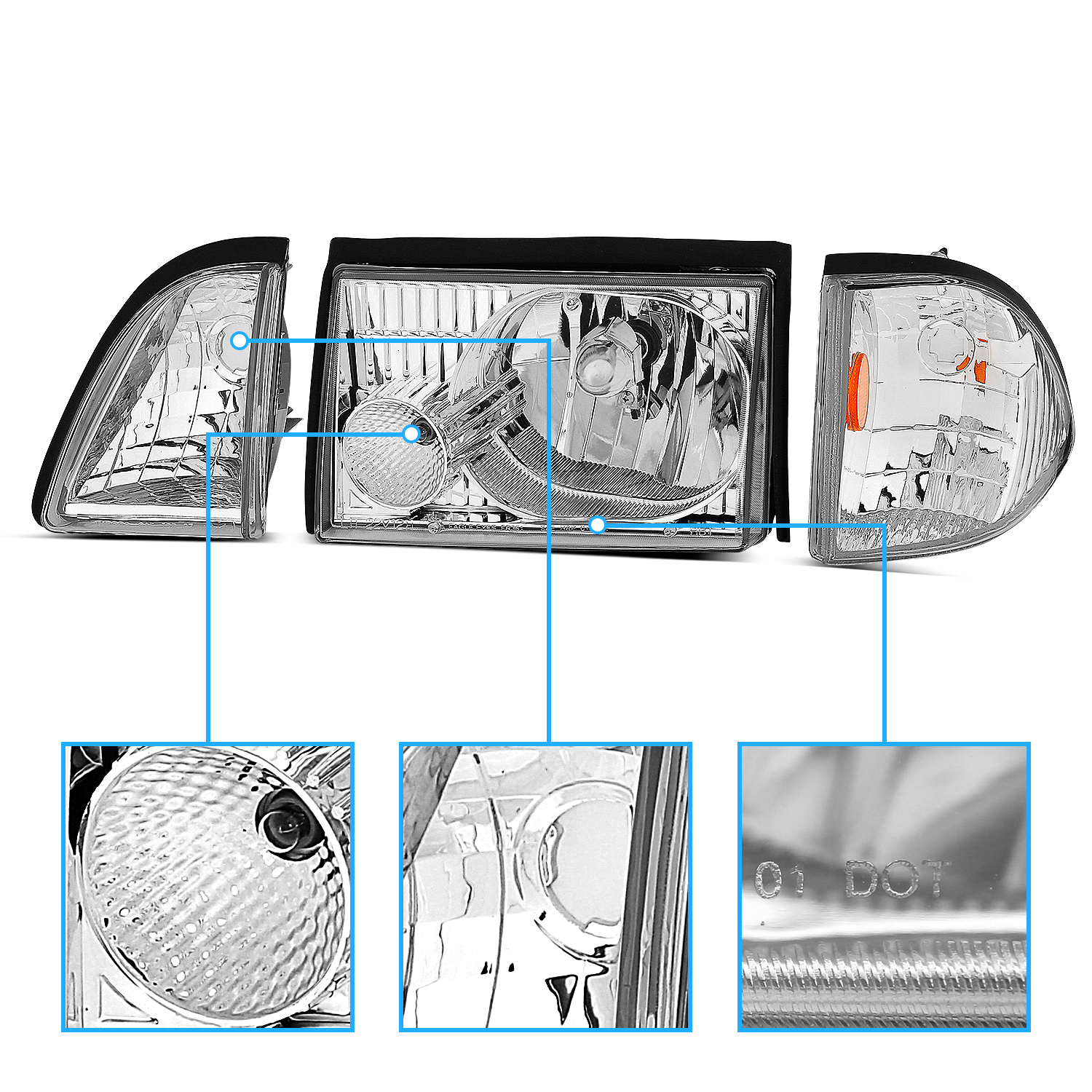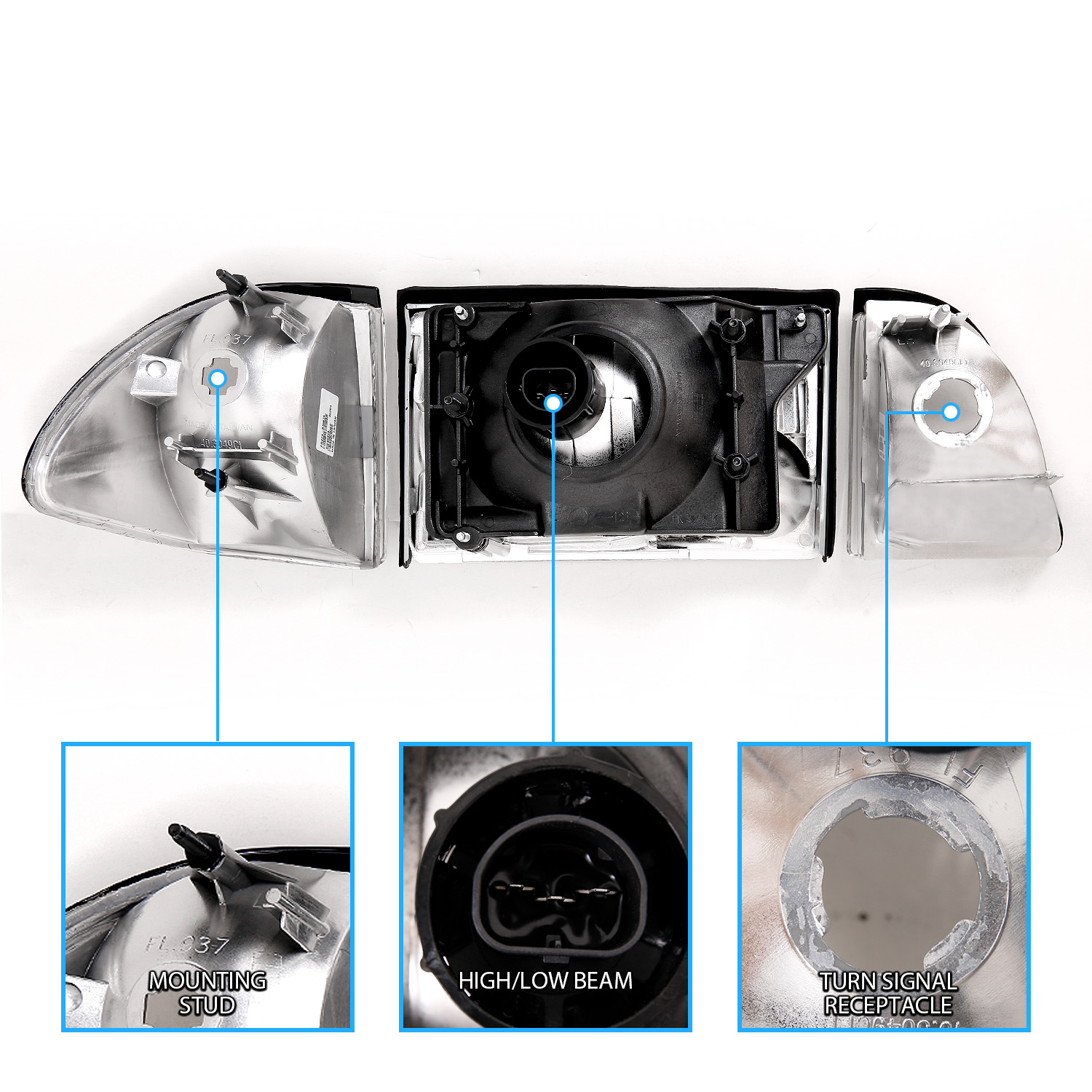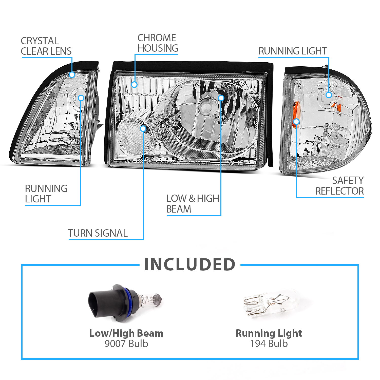 1987-1993 For Ford Mustang Chrome Headlights W/Corner Parking Lamp$118.28NewPerformance/CustomYesHalogen9007 Bulb, 194 BulbDOT, SAE CompliantFront, Left, RightTaiwanDriver and Passenger SetATTENTIONFits: