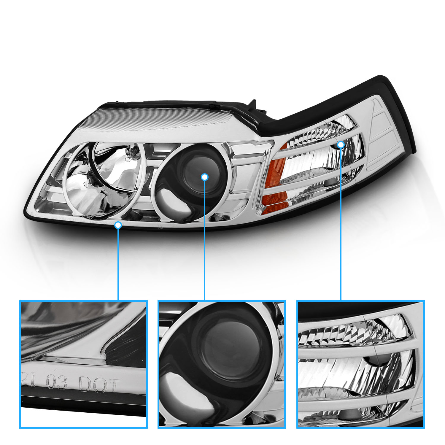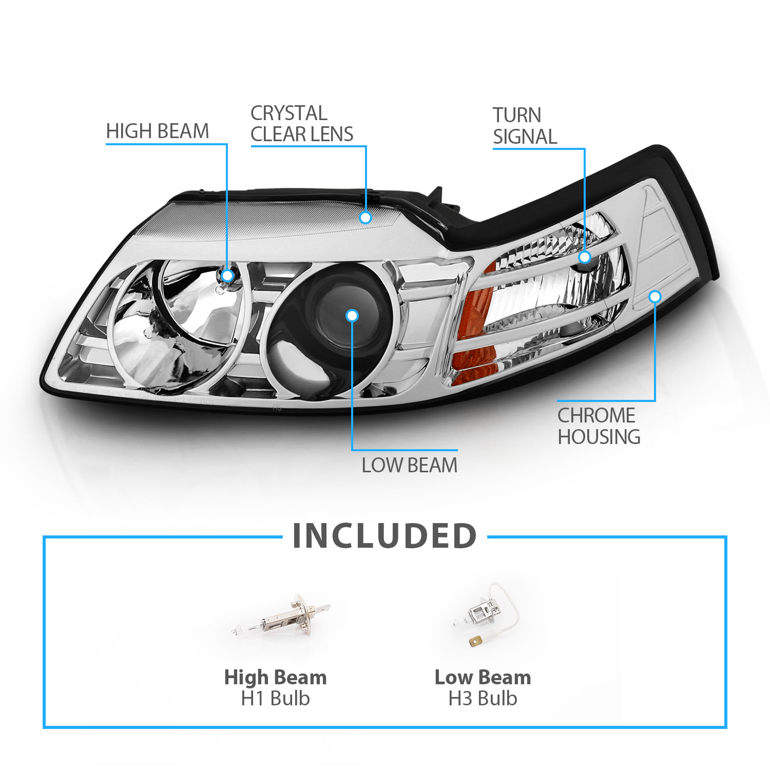 1999 2000 2001 2002 2003 2004 Fit Ford Mustang Chrome Projector Headlights Set$89.99NewPerformance/CustomYesHalogenH1 Bulb, H3 BulbDOT, SAE CompliantFront, Left, RightTaiwanDriver and Passenger SetATTENTIONFits: