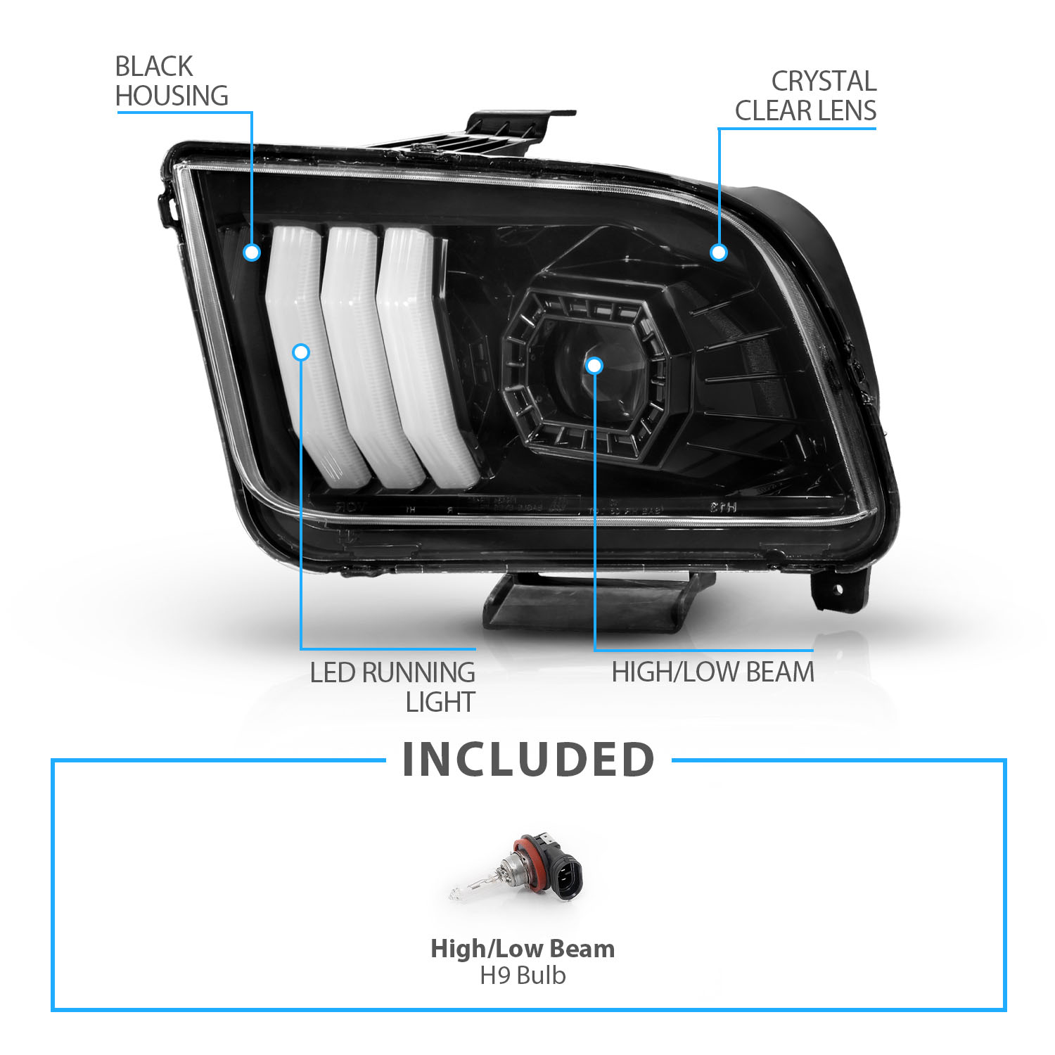 2005 - 2009 For Ford Mustang High Intensity LEDs Black Headlights Pair$190.80NewPerformance/CustomYesLED, HalogenH9 BulbDOT, SAE CompliantFront, Left, Right, Driver, PassengerTaiwanDo Not Fit Factory Xenon HID ModelATTENTIONFITS:
