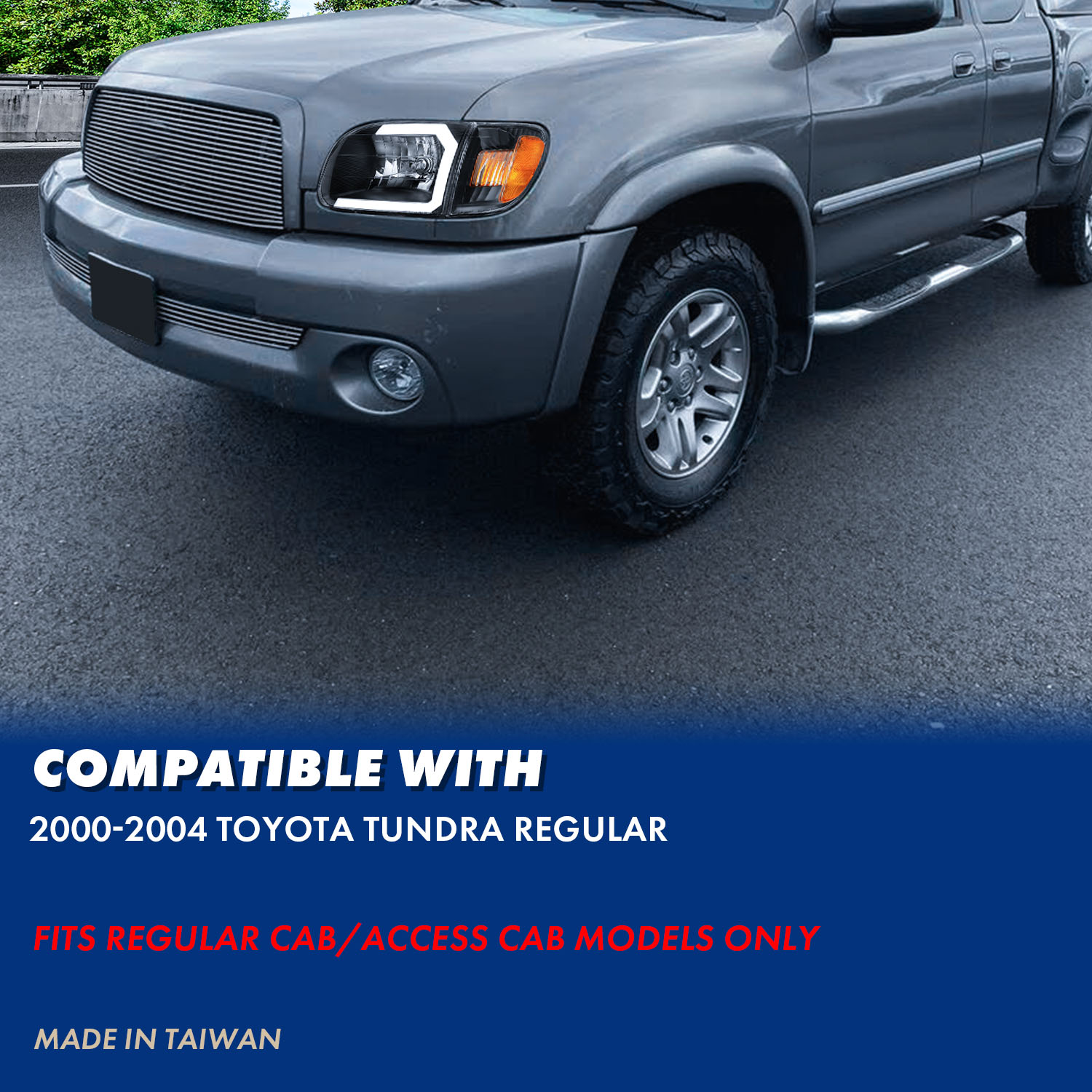 [LED C Light] For 2000-2004 Toyota Tundra Regular/Access Cab Black Headlights$200.74NewPerformance/CustomYesLED, HalogenH4 Bulb, 3157 Amber BulbDOT, SAE CompliantFront, Left, RightTaiwanATTENTIONFits :