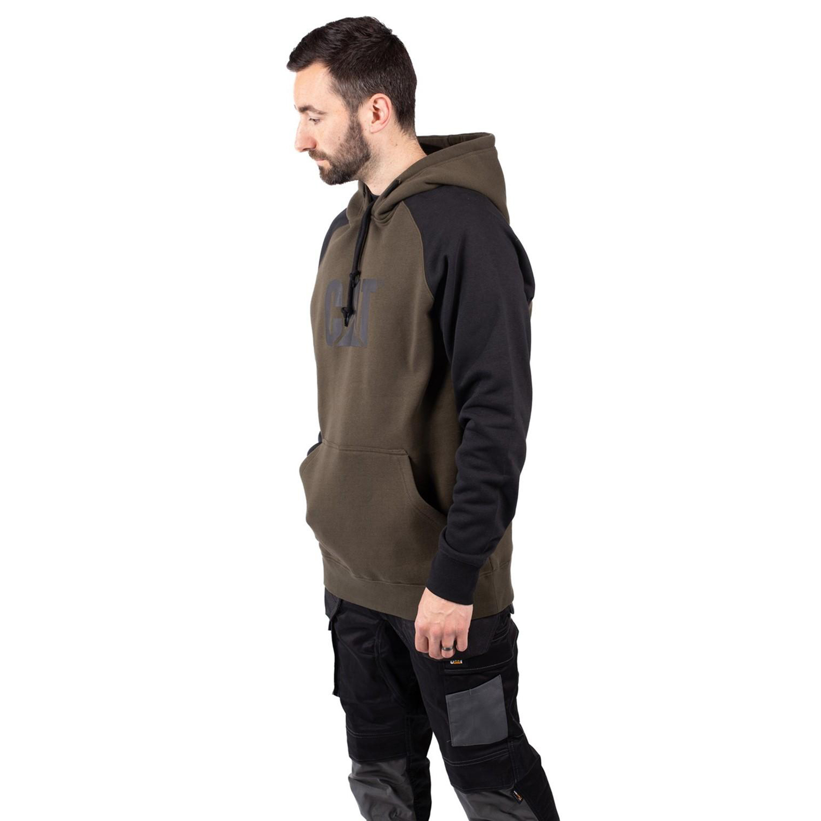 - Caterpillar 'CAT' branding on centre front chest