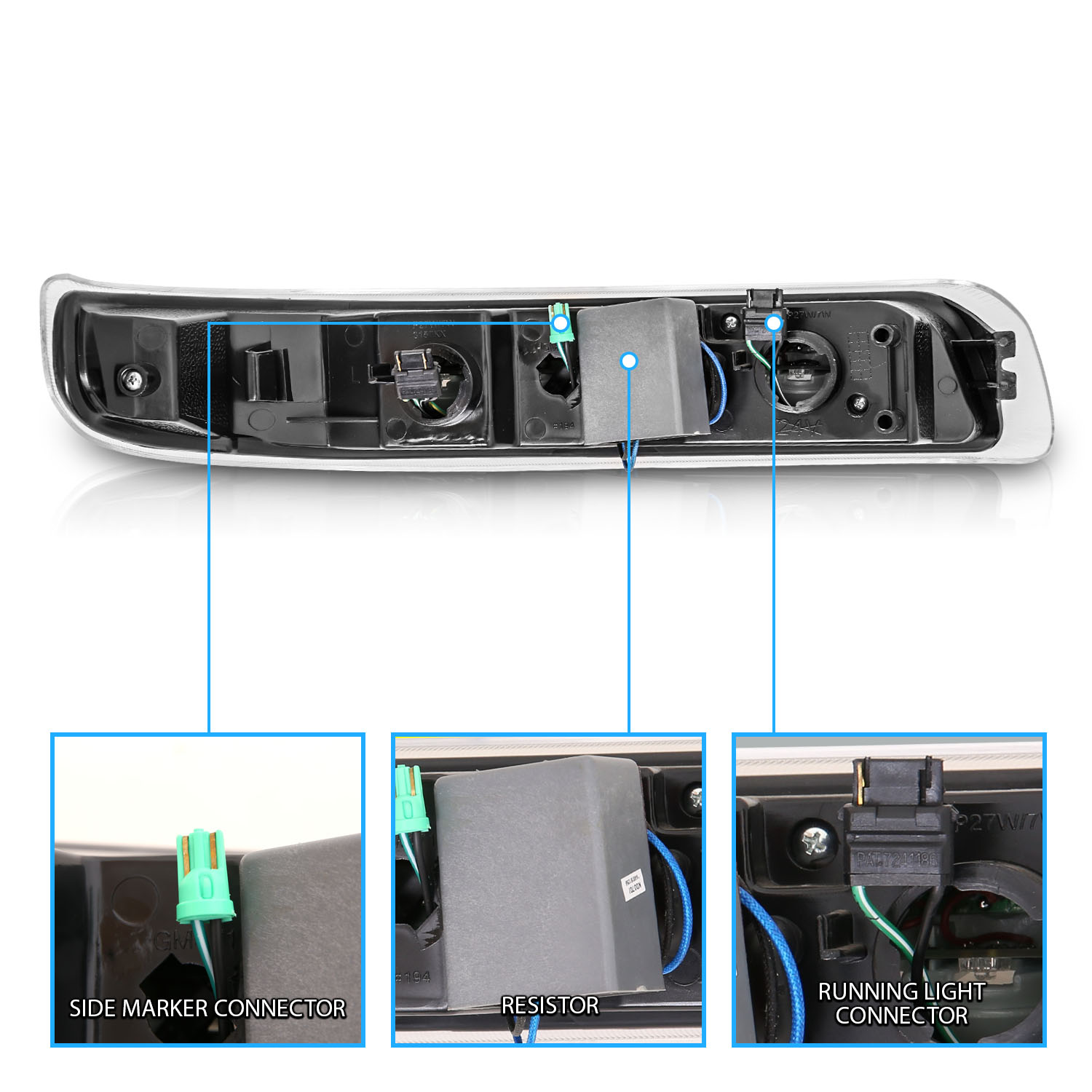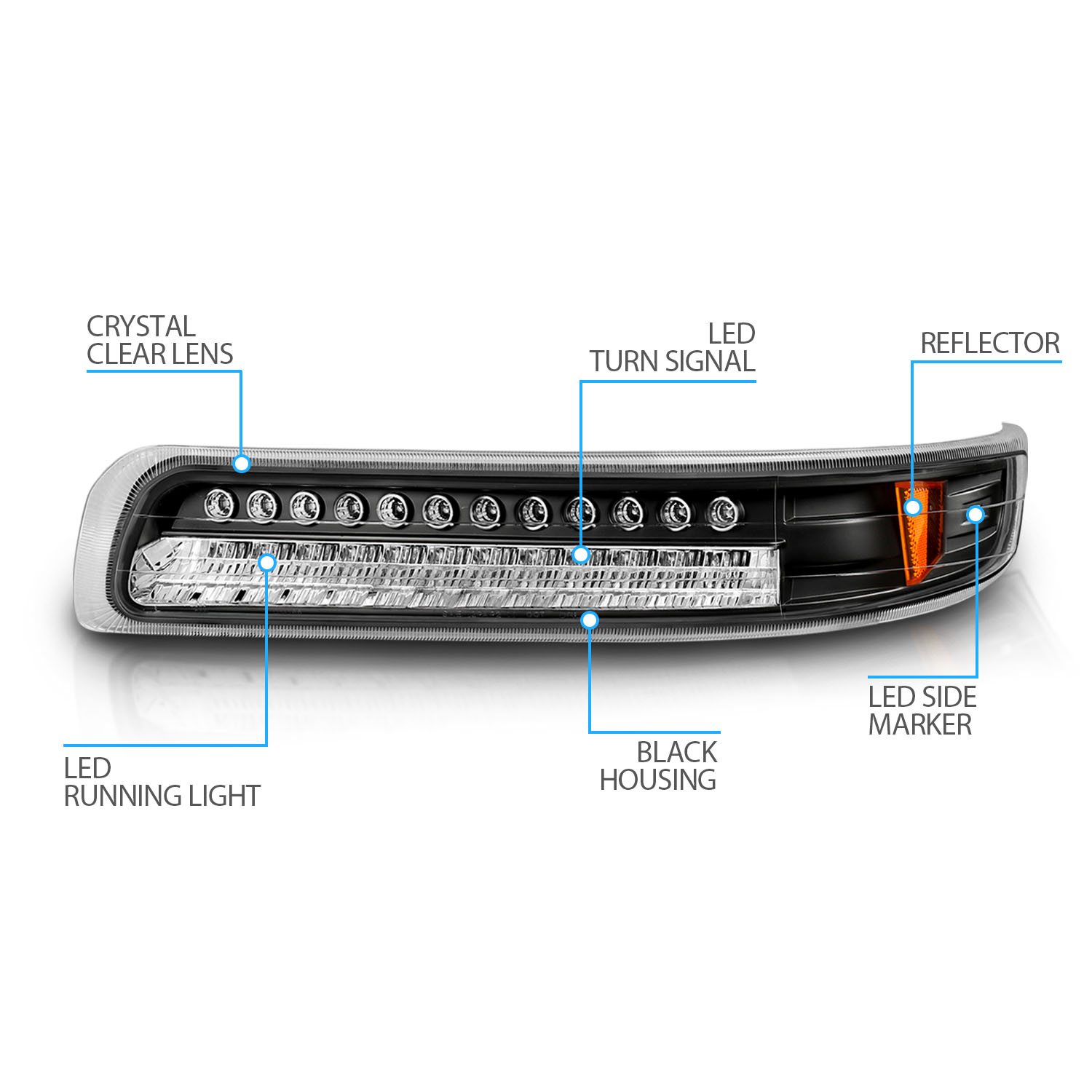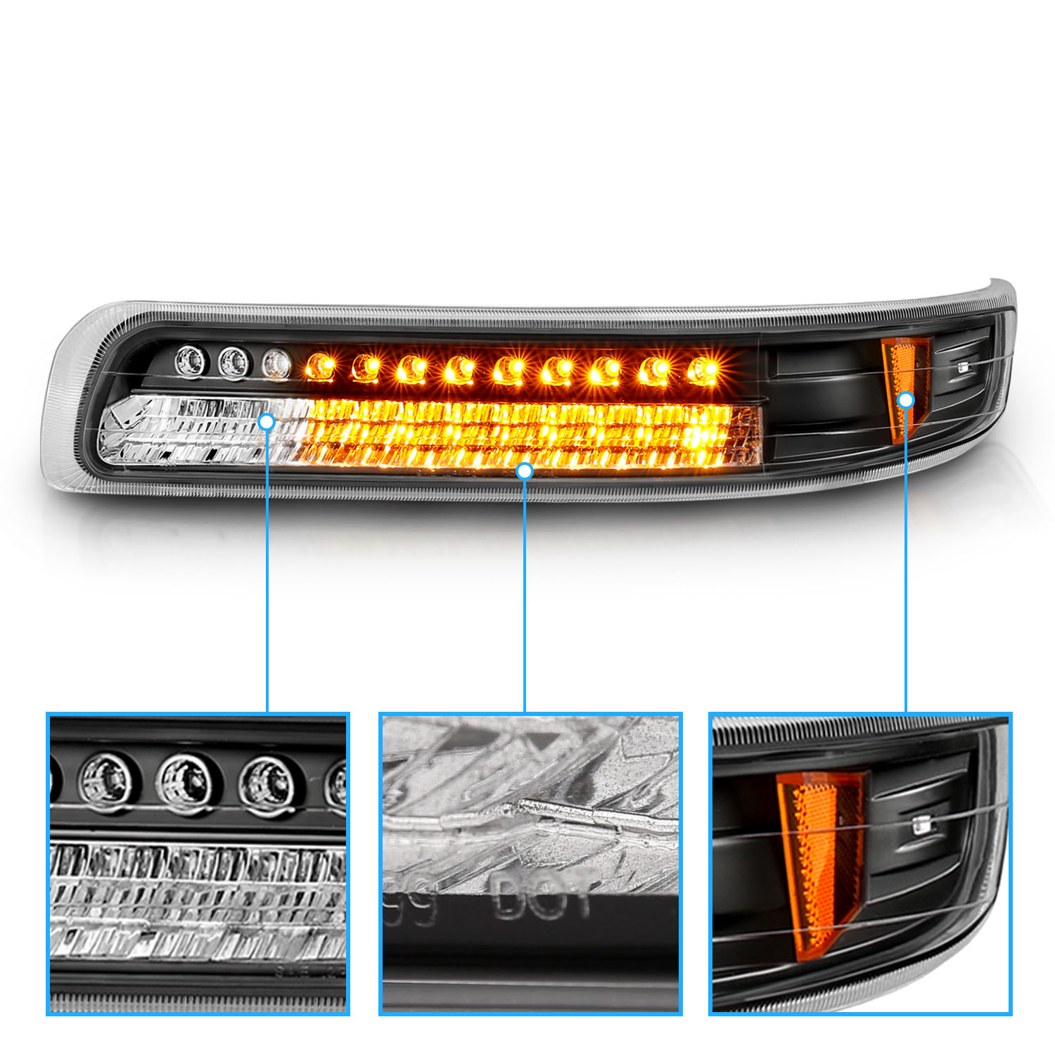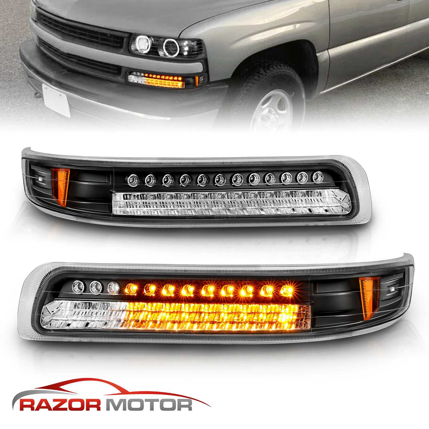 1999-2002 Fit Chevy Silverado/00-06 Suburban Tahoe Black LED Bumper Signal Light$118.86NewPerformance/CustomNoincandescentDOT, SAE CompliantFront, Left, RightTaiwanDriver and Passenger SetATTENTION1999 2000 2001 2002 Chevrolet Silverado