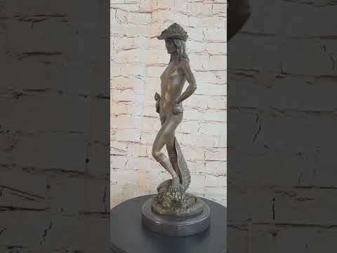 Experience the timeless masterpiece of Donatello's David with this remarkable bronze sculpture. Inspired by the renowned Italian sculptor's iconic work, this rendition captures the essence of the biblical story and the artistry of the Renaissance era. Commissioned in the early 15th century, Donatello's David depicts the triumphant moment after David's victory over the giant Goliath.