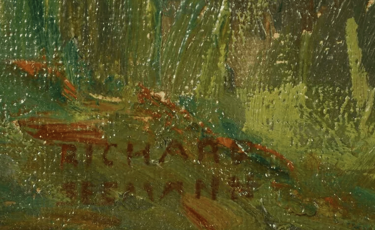 Richard Seemann (1857-1930) An zwei Stellen Farbabplatzer (links und unten) Instabile Mahlschicht aufgrund fehlender Grundierung
