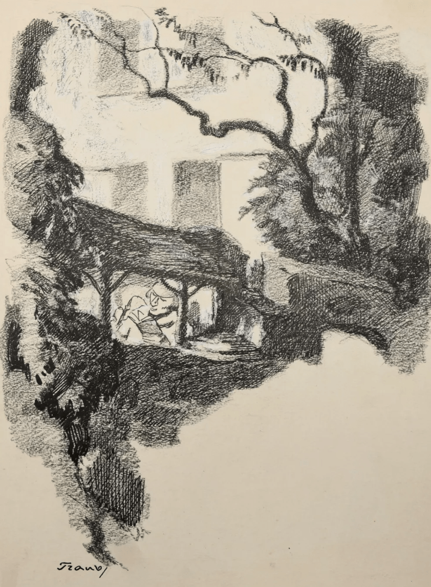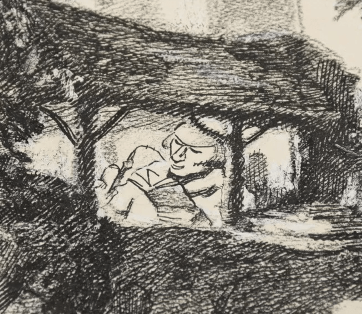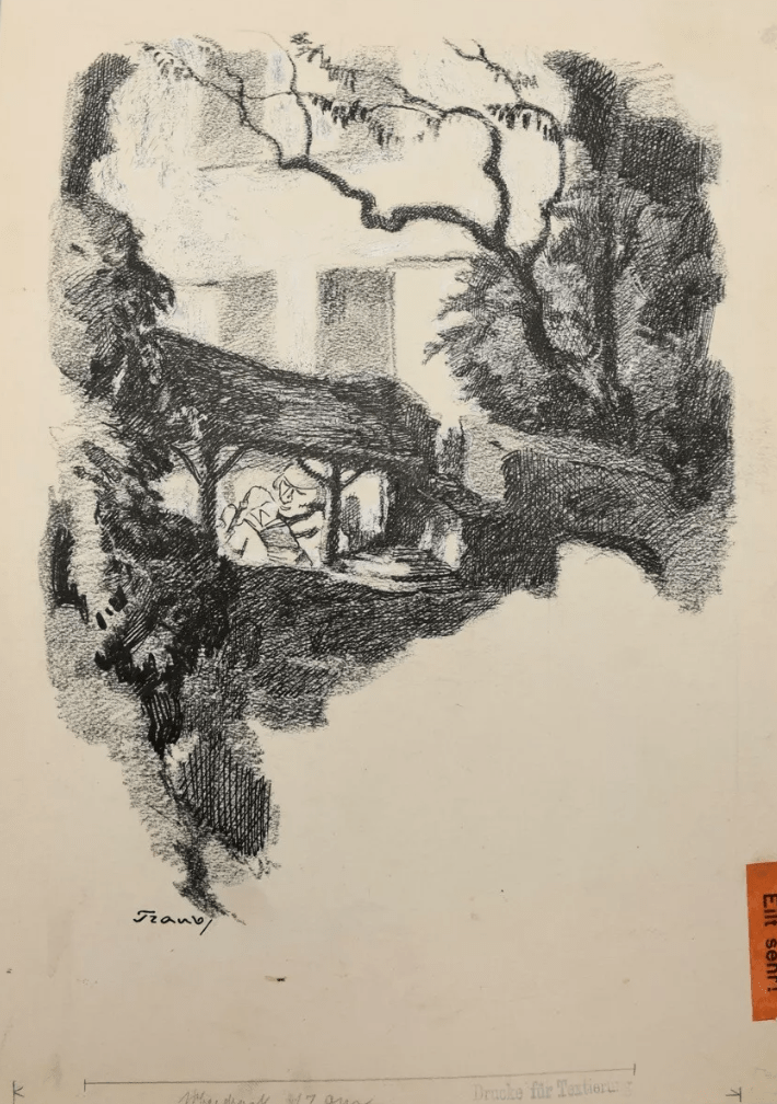 Verschanzt | Federzeichnung von Gustav TRAUB, für die Meggendorfer-Blätter