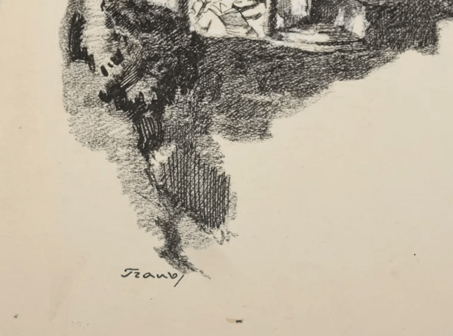 Zeichnungen und Werke auf Papier weisen zumeist Risse, Knicke oder Stockflecken auf. Sollten Sie aufgrund der Fotos unsicher sein, melden Sie sich gerne.