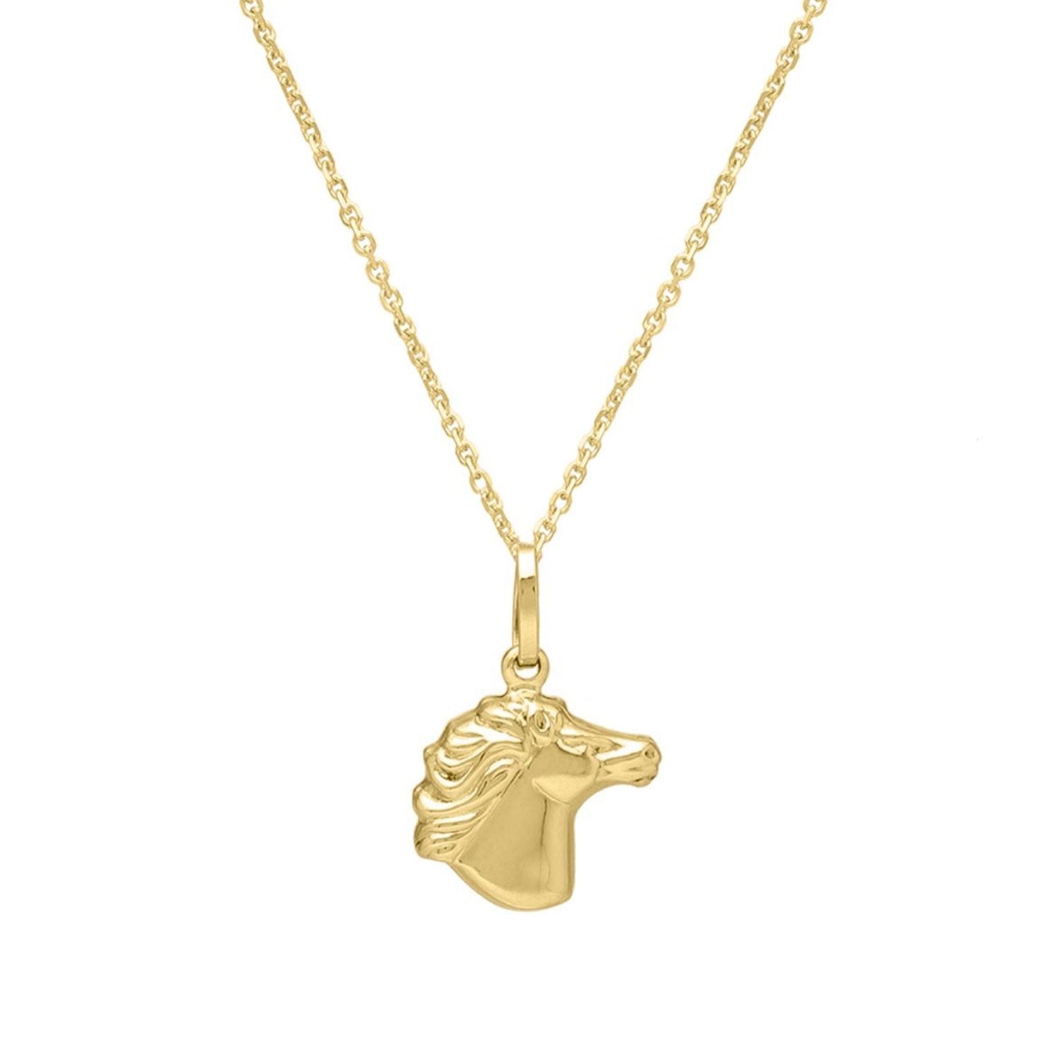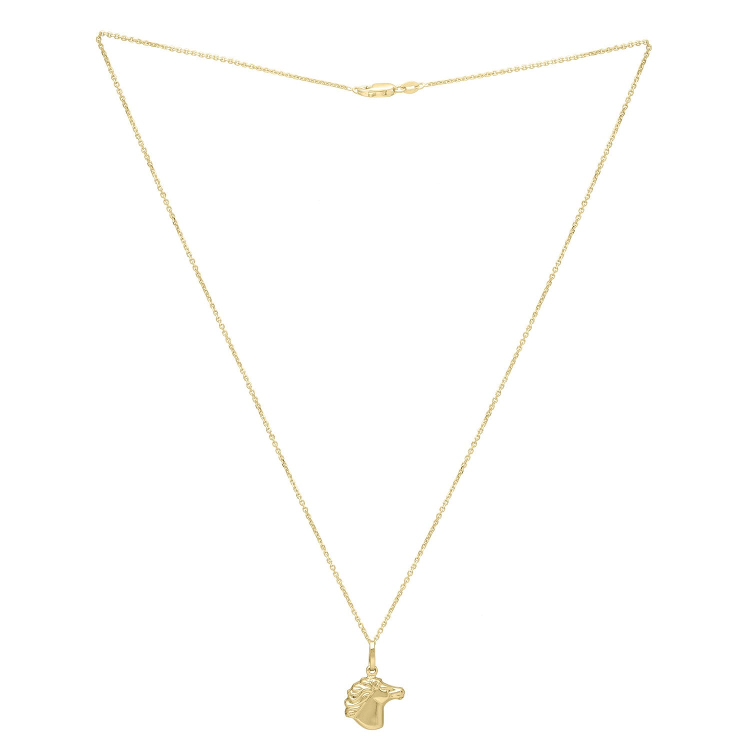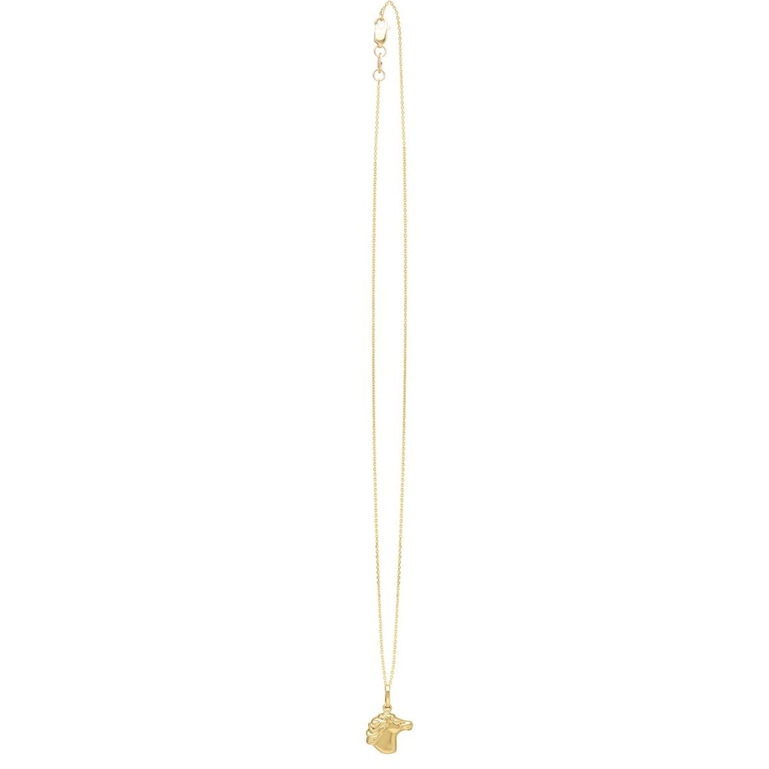 14k Yellow Gold Polished Medium Horse Head Pendant Chain Necklace,Lobster - 18"