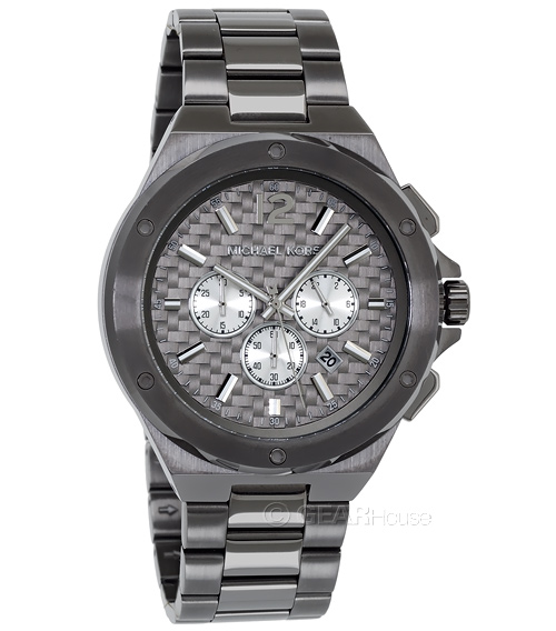 Built for modern sophistication, this Michael Kors 'Lennox' men's chronograph watch features durable stainless steel construction with a sleek gunmetal gray finish. The textured gray dial showcases a woven pattern with luminous accents and a precise chronograph function—two sub-dials track minutes and seconds when activated, while the third displays 24-hour format. A matching gunmetal stainless steel bracelet blends brushed and polished finishes for a refined, versatile look. Secured with a push-button clasp, this striking timepiece is designed to stand out. Case diameter: 48mm. Original MSRP: $295.