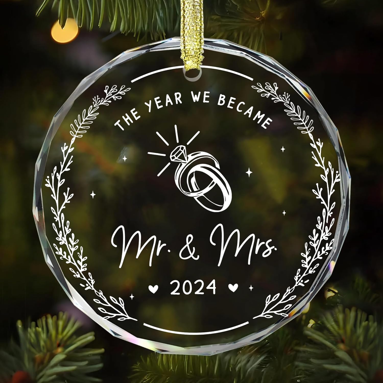 Xmas Ornament Size: 2024 newly marriage christmas ornament (3.15"L x 3.15" W x 0.23"D). Perfect size to hang on the Christmas tree. It's time to adorn your lovely new home with this stunning Christmas decoration idea 2024.