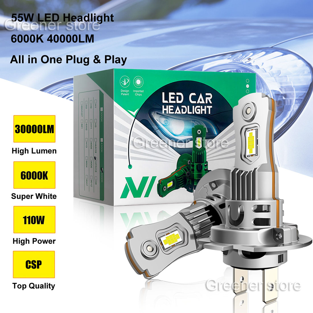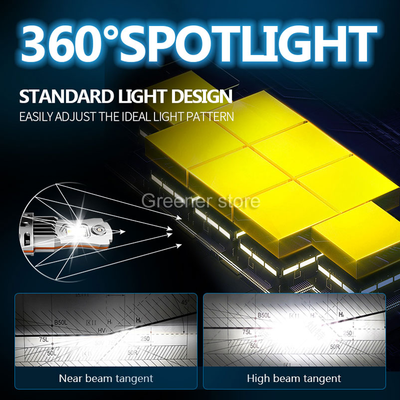 【600% plus lumineux que l'halogène】Puces LED CSP supérieures, 6500K blanc froid. Le modèle de faisceau super concentré fournit une gamme d'éclairage plus large et plus éloignée qui est 5 fois plus lumineuse que votre ampoule halogène h7 d'origine.