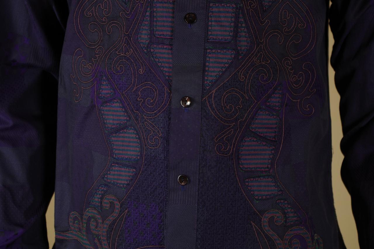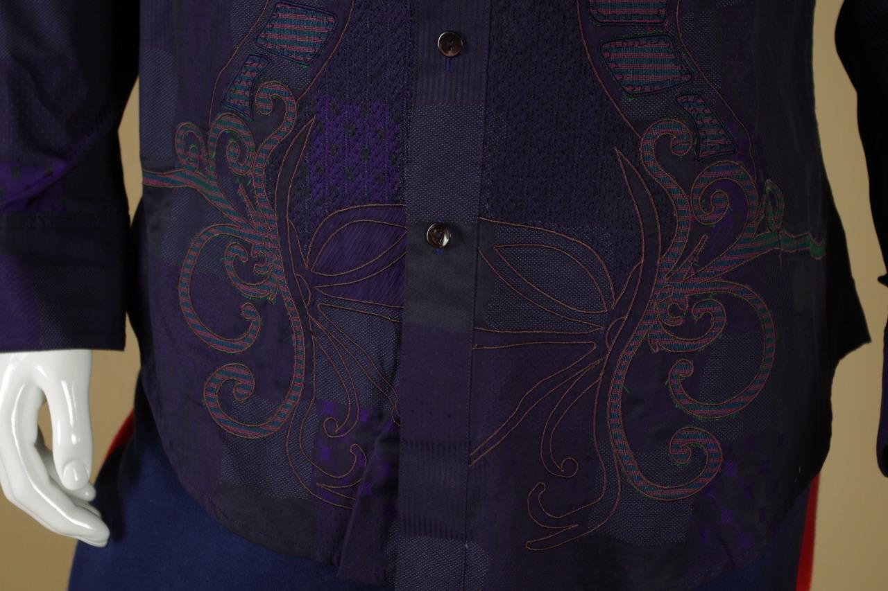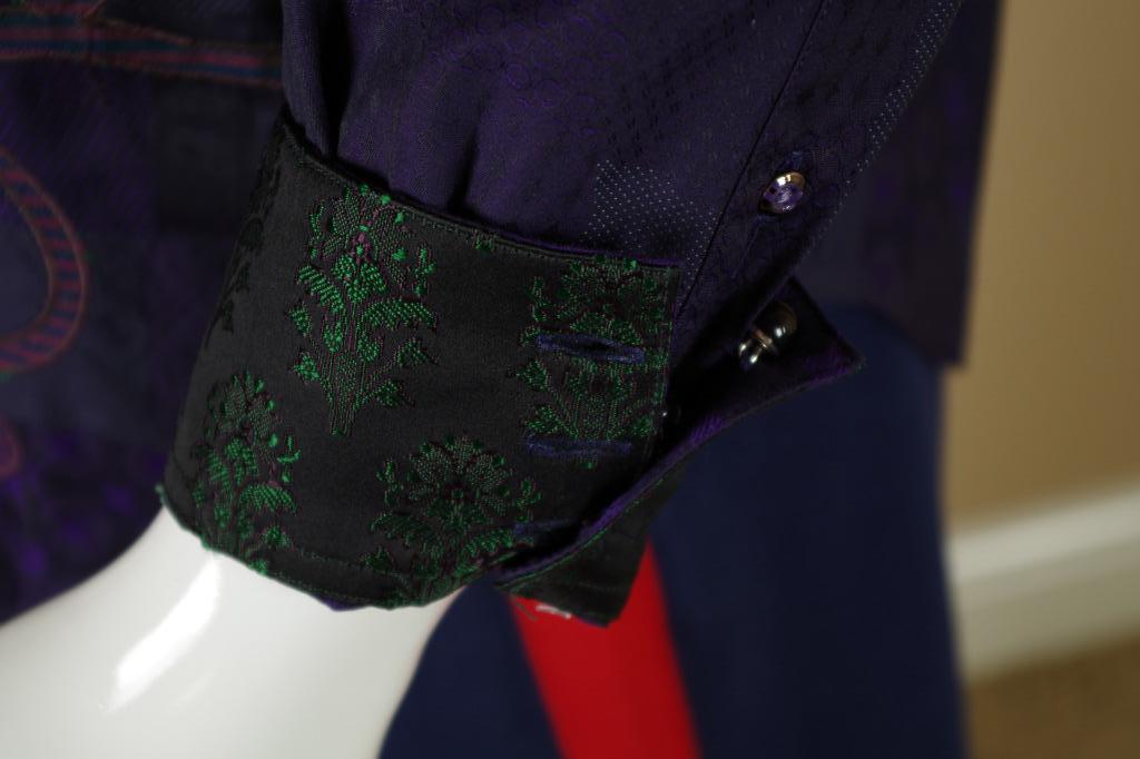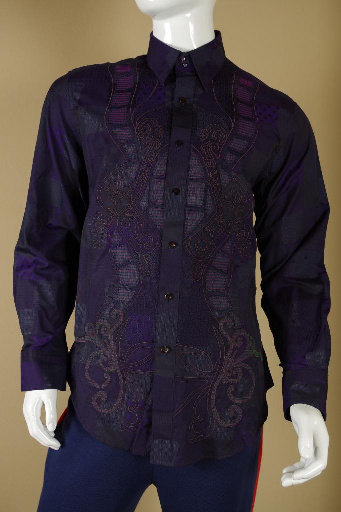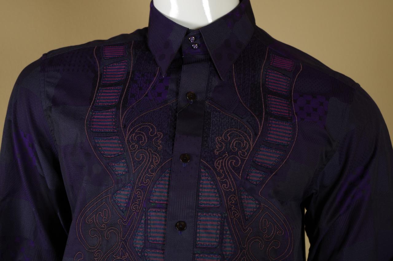 Details: One of my ever favorite Robert Graham Shirts. This is a limited edition shirt that was only made for Neiman Marcus. It is very difficult to find and is individually numbered #381 out of 434 total shirts made. The cuff buttons are half globe purple and clear glass and the reverse cuff is gorgeous. I find the design to be spectacular in pattern, but somewhat subtle in color. Personally, I love it. This shirt is tailored in Robert Graham's Classic Fit.