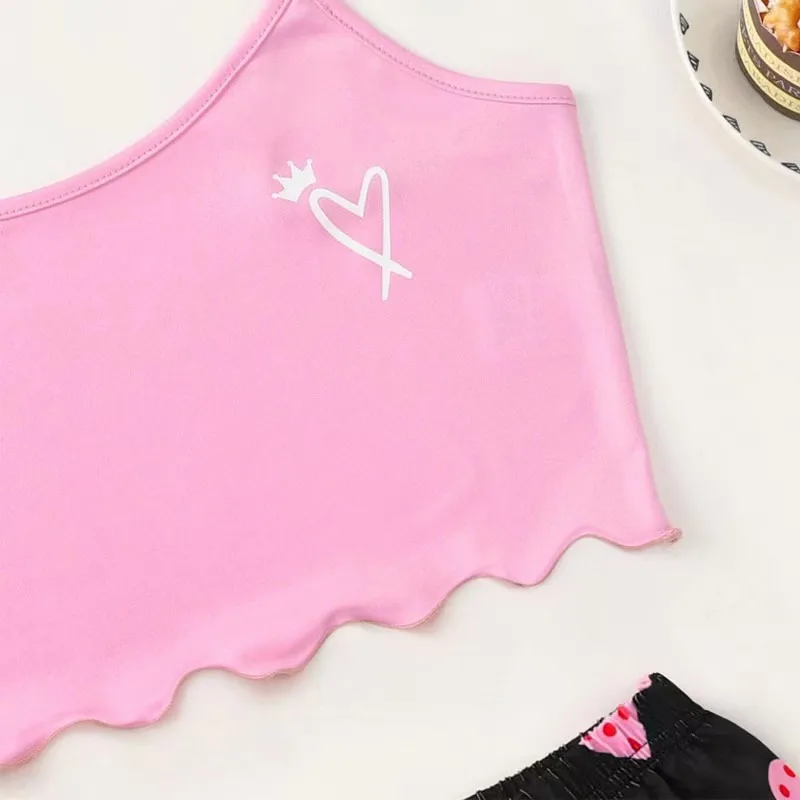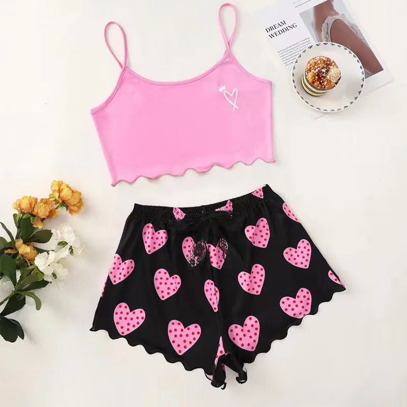 Women's Pajamas Set Sleepwear 2 PCS Short Tank Tops And Shorts S M L Pink Ventilate Soft Casual Love Print