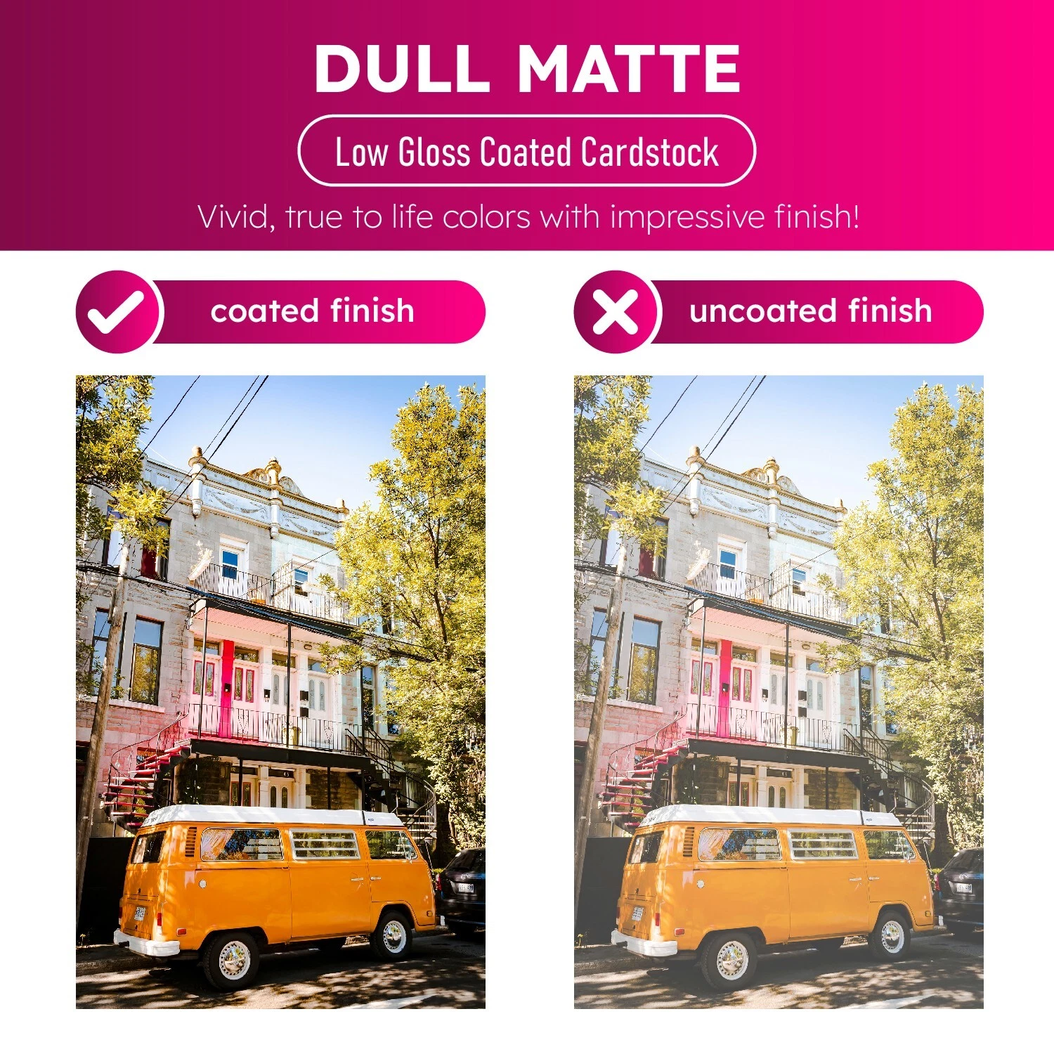 DULL COATED FINISH - Has a slightly more vibrant coated finish than the matte stock and prints with brighter colors. Ensures detailed, crisp and vivid photos and prints.