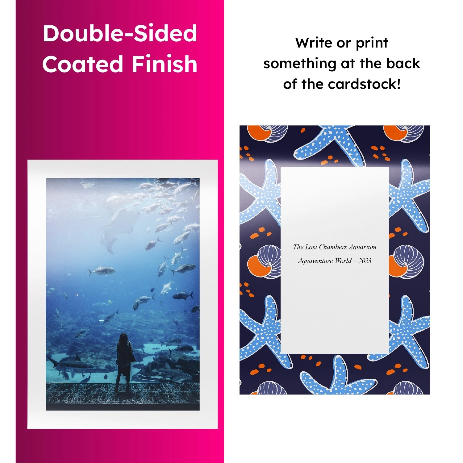 DOUBLE SIDED COATING - The dull glossy coating on both sides of the cardstock and the thick paper weight is excellent for double-sided printing. Ideal for flyers, photos, posters, brochures, catalog covers, booklets, and other multi-page documents.