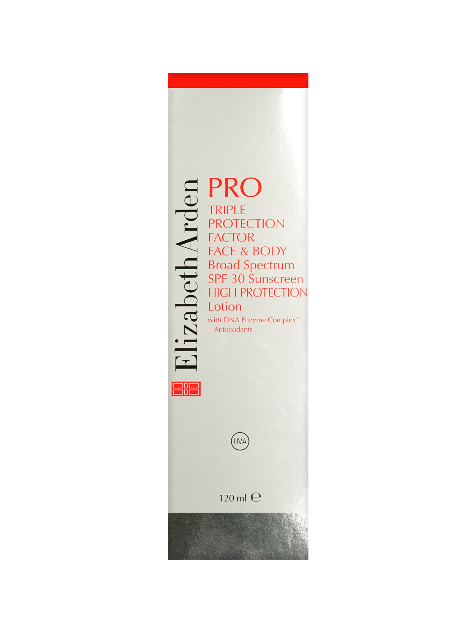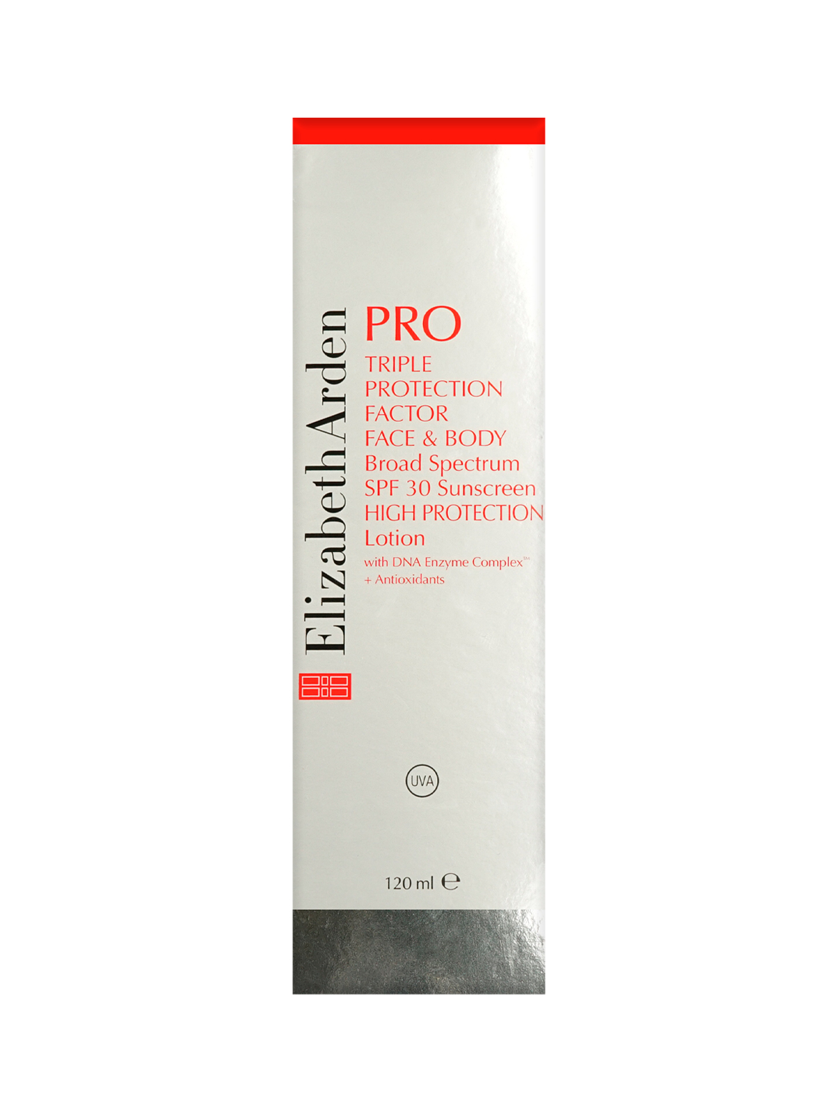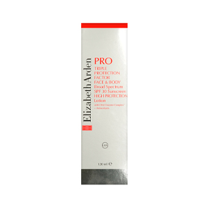 Elizabeth Arden Pro triple Protection Factor Face & Body Broad Spectrum SPF 30 Sunscreen is a multifunctional skincare product designed to provide comprehensive protection against environmental stressors and sun damage. Provides broad spectrum SPF 30 prot