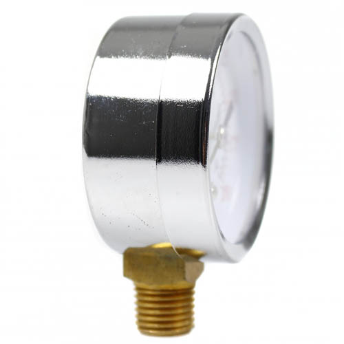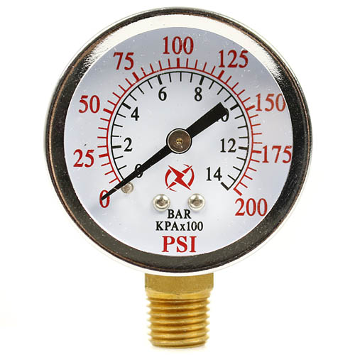 This is a brand new air pressure gauge. This 0-200 PSI air pressure gauge features a 2" face and 1/4" NPT side mount. This gauge can measure air, water, oil, gas, and anything else that is not corrosive to brass. This is a chrome steel gauge with a chrome steel bezel.