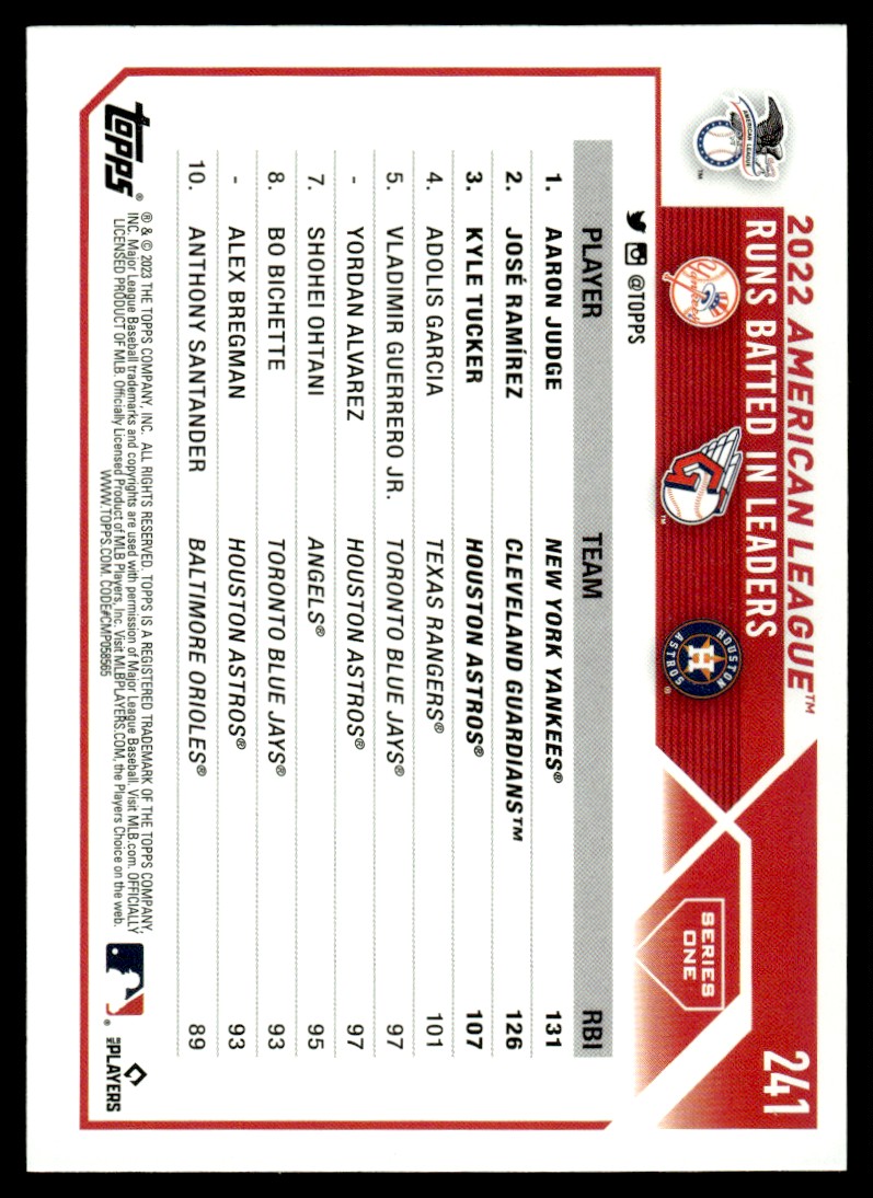 | 2023 TOPPS SILVER FOIL Aaron Judge/José Ramírez/Kyle Tucker) LL #241 | ||||||||||||||