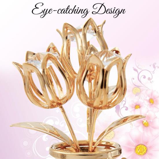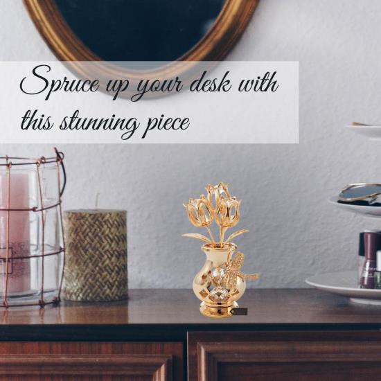 Matashi 24K Gold Plated Crystal Flower Ornament in Vase – Clear Crystals, Elegant Home Decor, Tabletop Accent, Collectible Gift for Women, Birthday, Anniversary, Wedding, Luxury Decorative Showpiece, Sparkling Crystal Flower Art, Unique Gift Idea