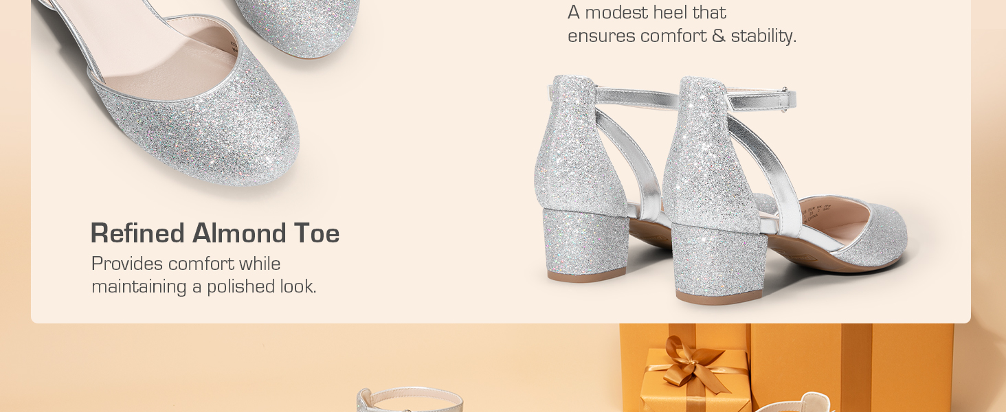 • Comfortable Heel: 1.5-inch block heel for style and comfort.