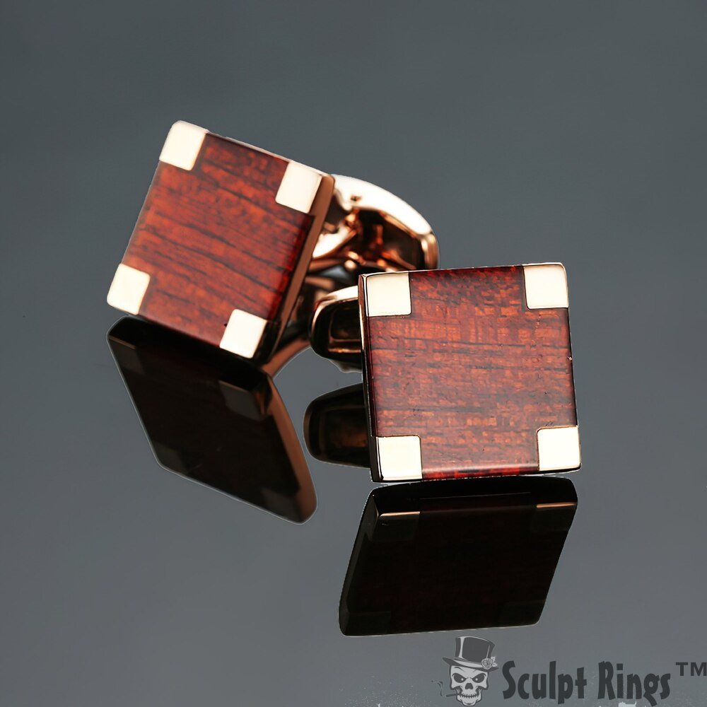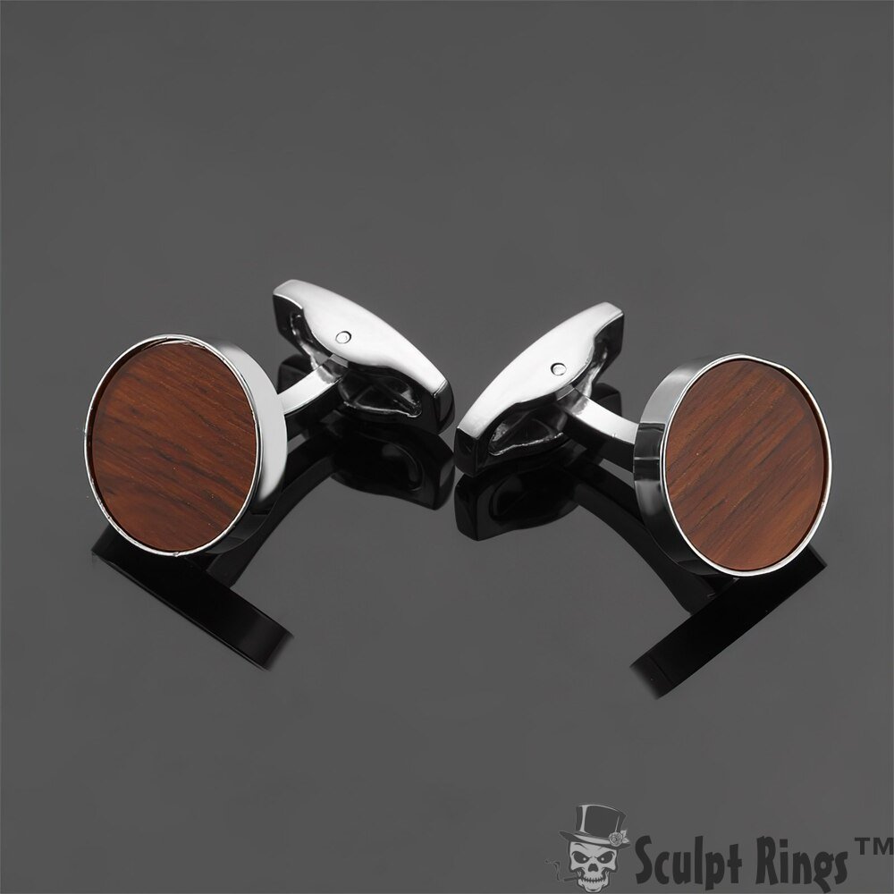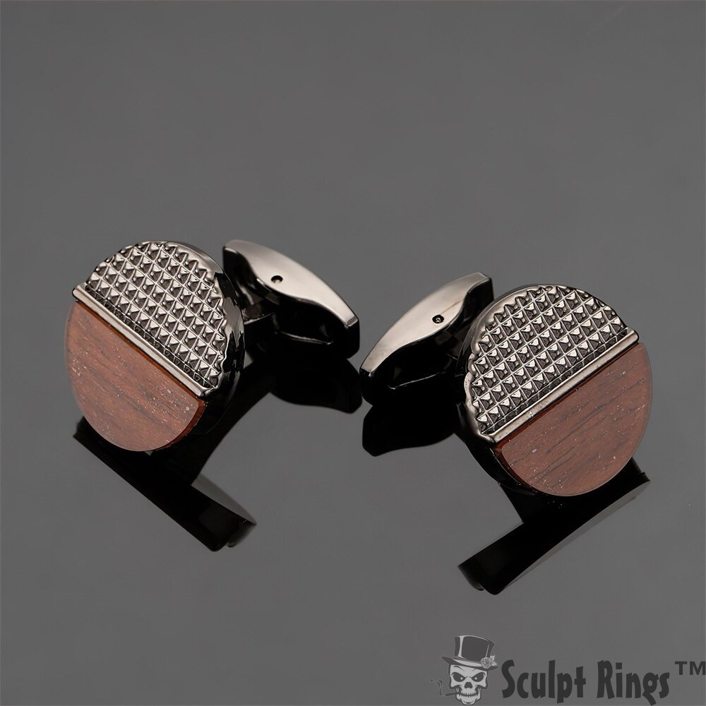Sculpt Rings™ Men's Wooden Cufflinks – Vintage Metal & Wood Design, Formal