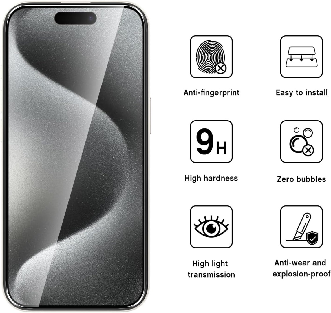 • Top Grade Protection- Made from superior 9H tempered glass that is scratch resistant and shatterproof protecting your screen from scratches to high impact drops. Oleophobic Anti-Fingerprint Coating- keeps your screen free of fingerprints and oily smudges and is easy to clean.