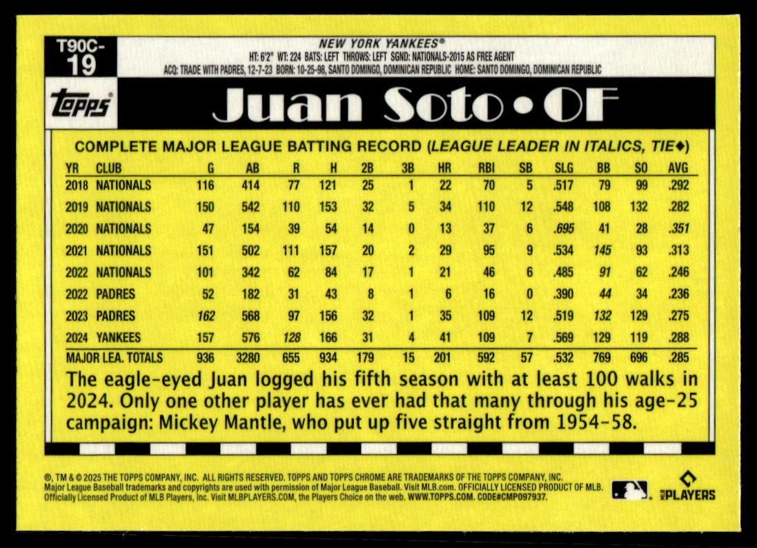 2025 Topps Series 1 Juan Soto 1990 Mojo #T90C-19