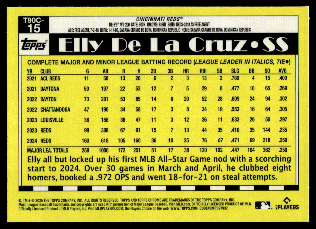 2025 Topps Series 1 90 Silver Pack Chrome Mojo - Elly De La Cruz #T90C-15
