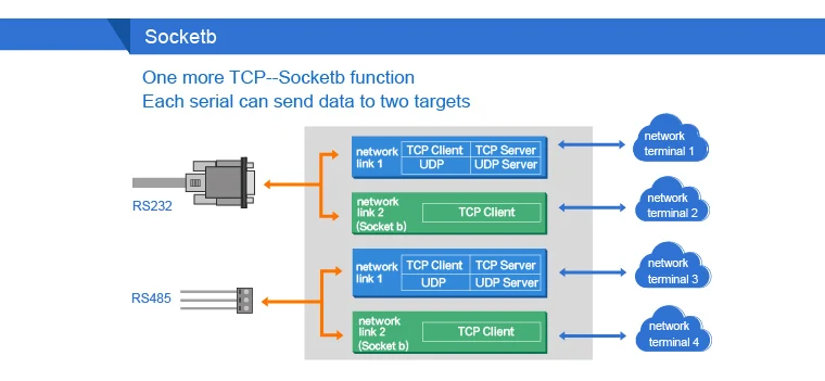 TCP Server,TCP Client,UDP,UDP Server and HTTPD Client work mode