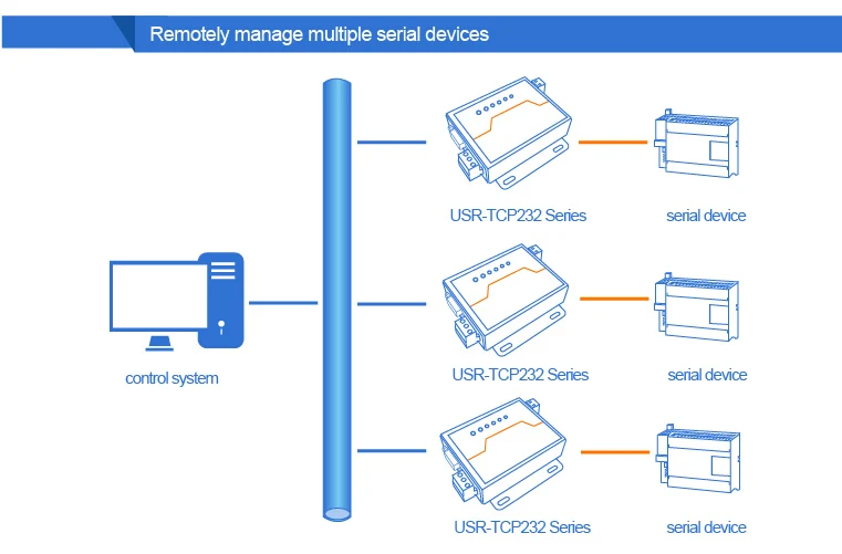 This is a serial rs485&rs232 to Ethernet server, used for data transparent transmission.USR-TCP232-410S is a dual serial server, which supports rs232 & rs485 working at the same time. It is based on Cortex-M4 solution And the internal of the serial server integrates TCP/IP protocol stack.Besides,USR-TCP232-410S has the function of terminal power supply.