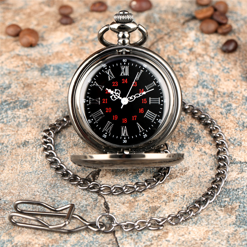 Men Black Hand Wind Mechanical Pocket Watches Roman Numerals Display Fob Watches