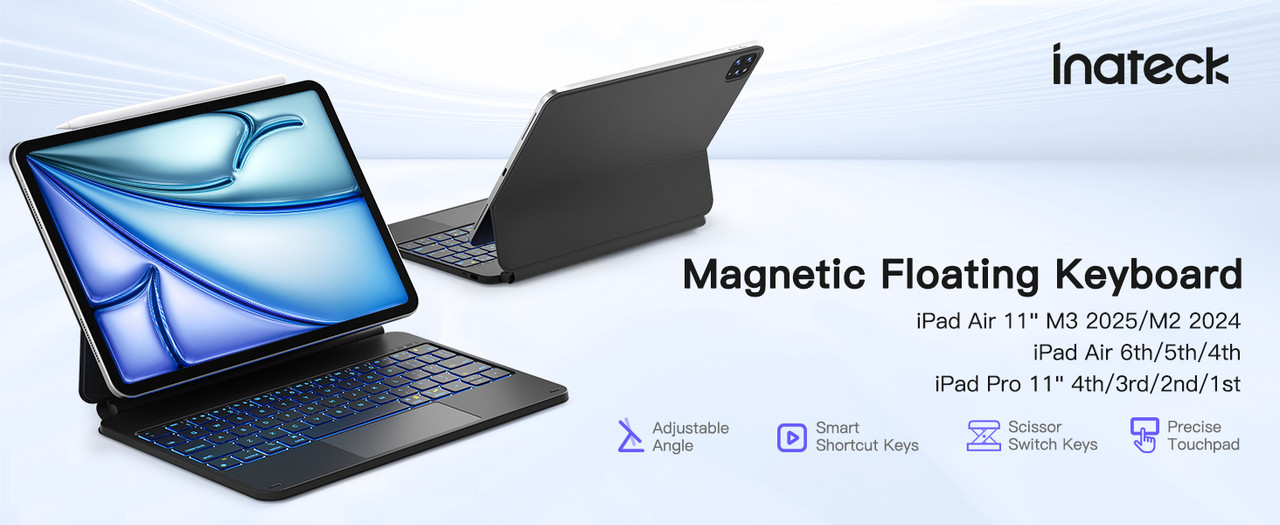 Inateck Magic Keyboard Case for iPad Air 11 inch (2025 M3/2024 M2), Easy-Set Keyboard for Air 6/5/4 Gen, iPad Pro 11 inch 4/3/2/1 Gen, Floating Cantilever Stand, 7-Color Backlight with Trackpad, KB09119