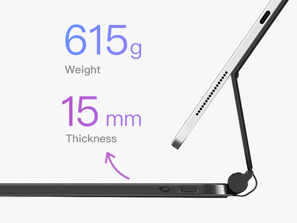 Easily attaches magnetically to transform your iPad into a laptop. The aluminum alloy hinge allows adjustment to a 130-degree tilt angle for comfortable typing. It‘s slim and lightweight, easy to carry and perfect for travel, business, and study