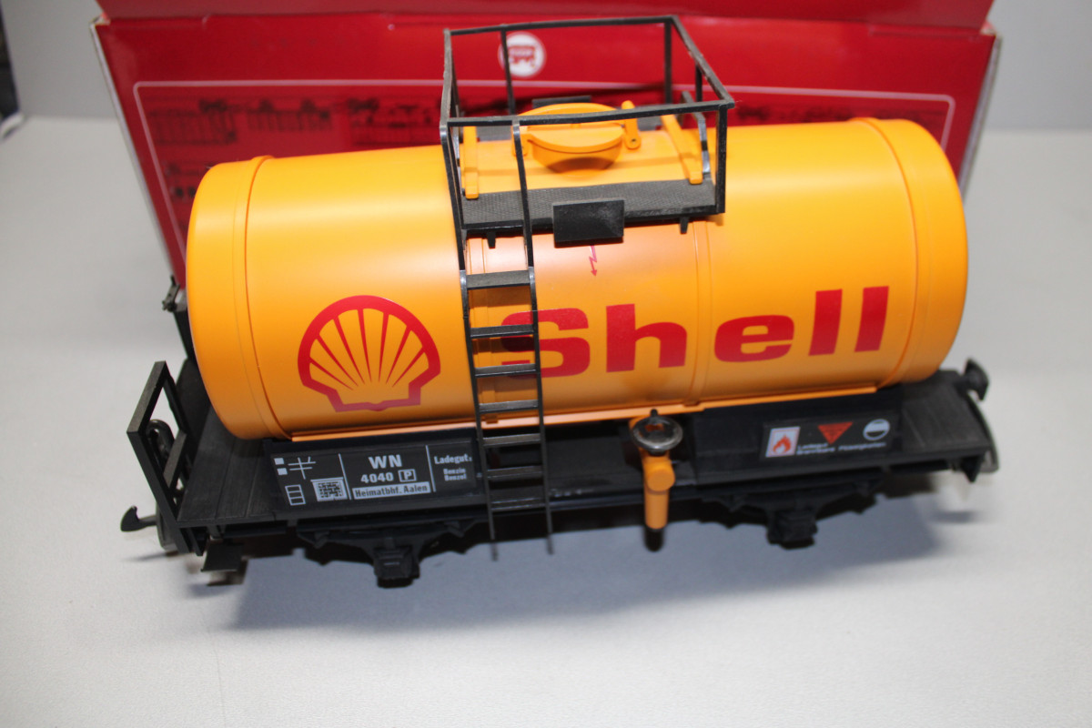 Es ist ein LGB 40402 2-Achser Kesselwagen Shell DB Spur G OVP.