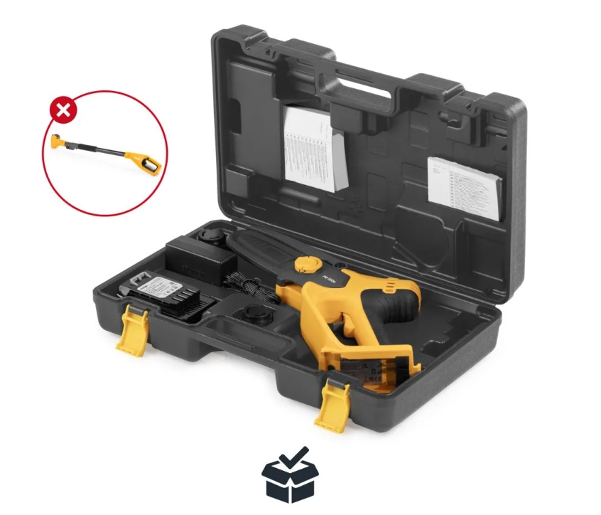 La podadora a batería STIGA PR 100e Kit está diseñada para trabajos de poda ligeros, corta sin esfuerzo 120 ramas de hasta 50 mm de diámetro con una sola carga. Su diseño liviano y fácil de usar lo hace lo hace ideal para la poda del suelo. También es posible cortar zonas de difícil acceso hasta 1,8 metros. El Kit PR 100e cuenta con una bomba de aceite integrada para facilitar la lubricación de la cadena. Con la batería de 2 Ah 20 V y el cargador de 20 V suministrado, esta tijera de podar es para