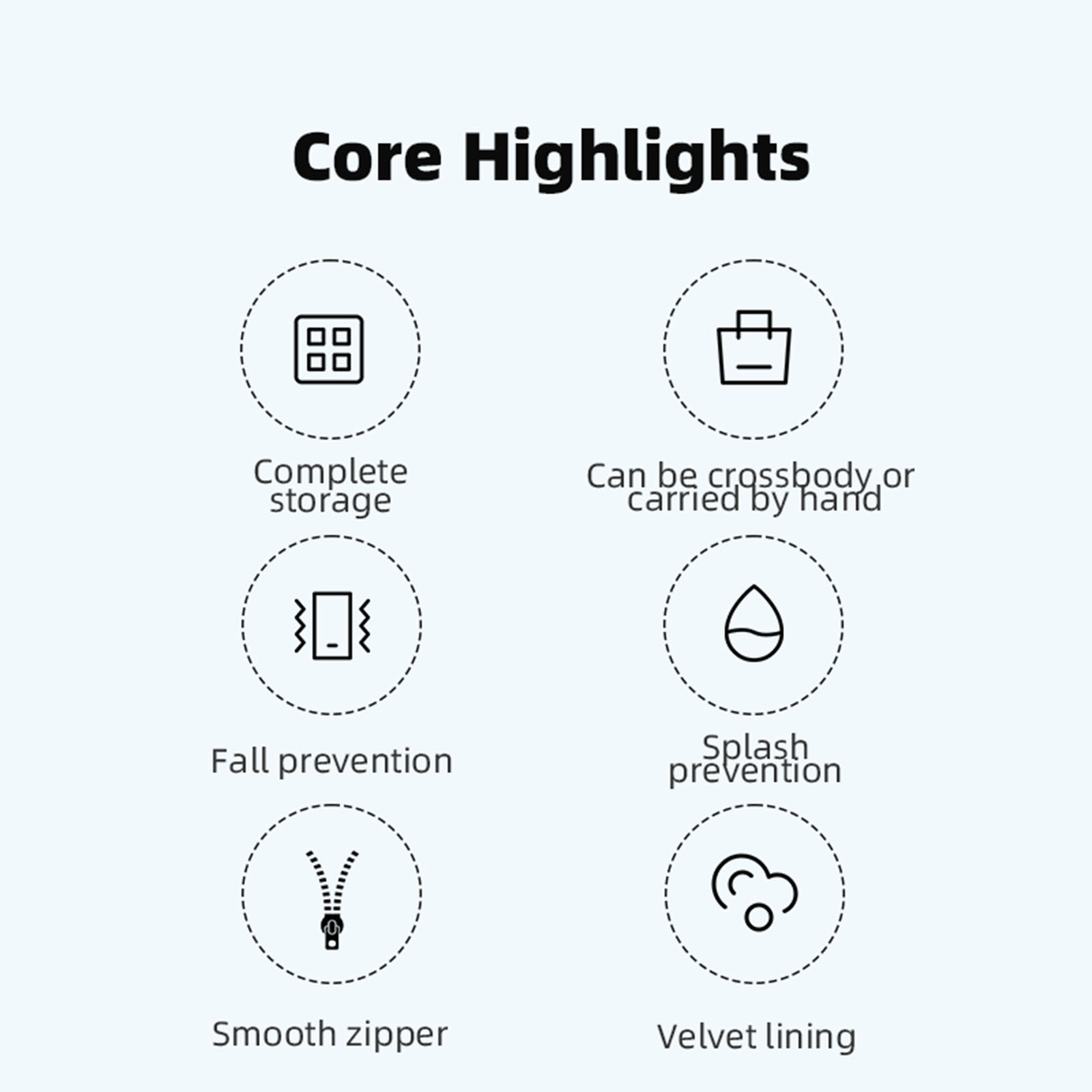 l There is an accessory storage net bag on the top, which can be used to place accessories such as data cables, memory cards, filters, etc. according to needs