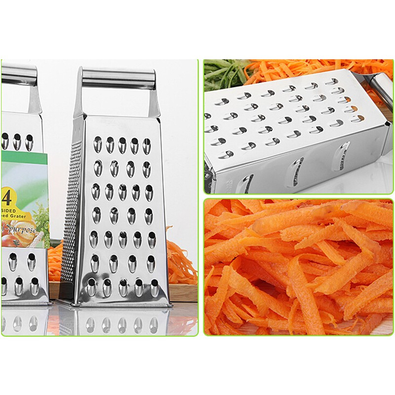 * La râpe à boîte 4 côtés a des côtés de grille fins, moyens et grossiers et un côté tranchant.