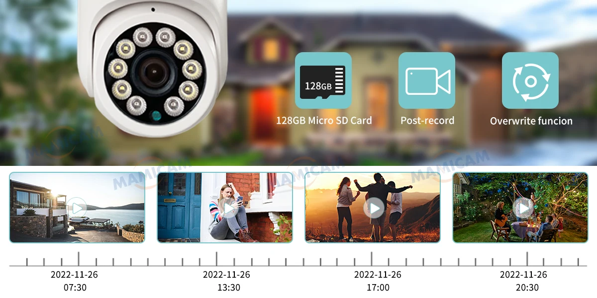 The smart motion detection helps you keep close eye on every movement happened in your home. if motion is detected,the alarm notification will be quickly pushed to your phone, images captured.