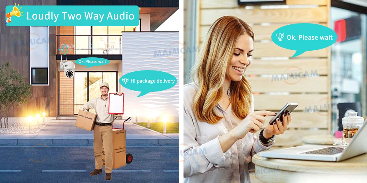 Real-time videos are smoother and clearer. Built-in anti-noise microphone and speaker system support 2-way talk. You can chat with the person in front of camera anywhere, anytime.