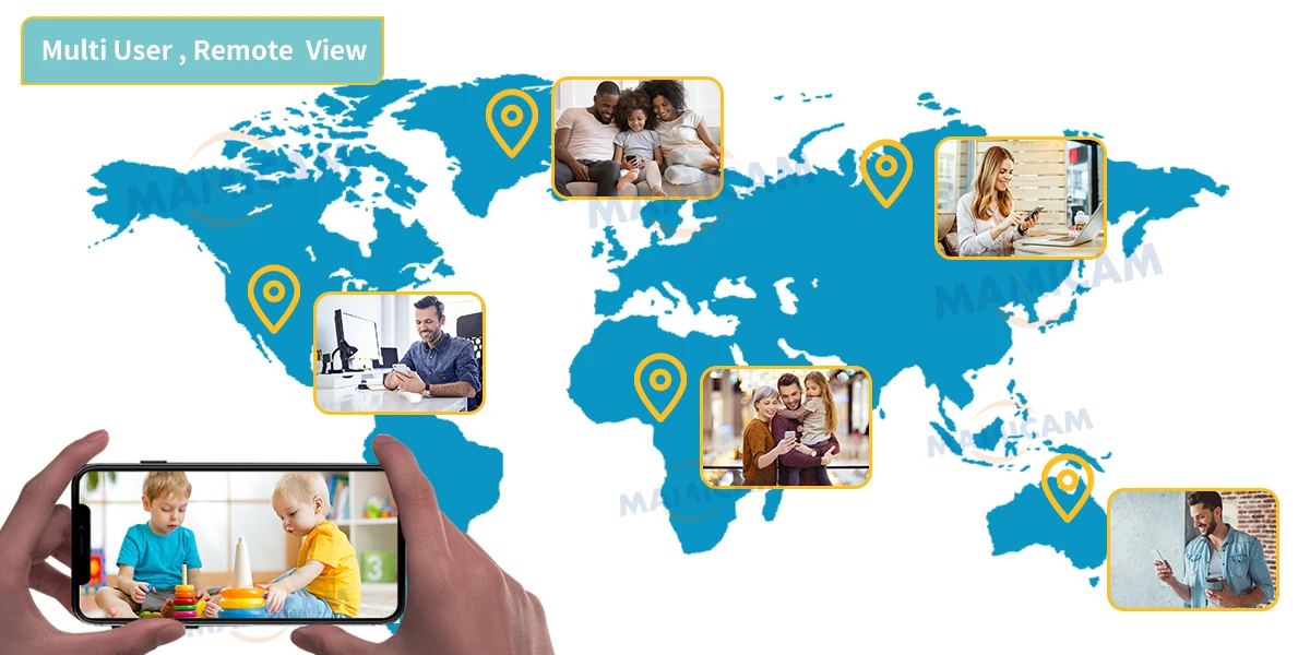 Support of remote monitoring with 5-8 users at the same time, you can share the scenes with your family and friends, Your families and friends can view the record video at same time.