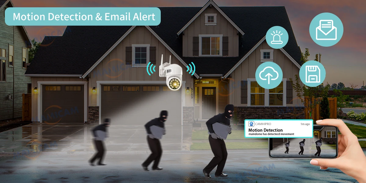 Having the function of motion detection, the camera can provide you with 24/7 protection. When motion is spotted, you will receive an instant alert to know that someone is approaching your home.
