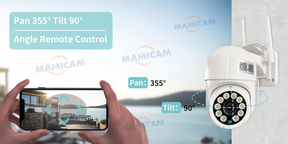 With PTZ 355°Pan 90°Tilt, 360° viewing angle, cctv camera wireless outdoor can monitor every corner. Support horizontal automatic tracking and Vertical horizontal manual tracking.