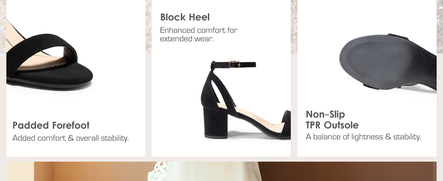 • Comfortable & Non-Sip: These women's low heels are designed with an ankle strap that allows you to adjust for the perfect fit. The lightweight TPR outsole enhances stability while allowing you to walk with ease.
