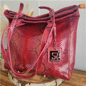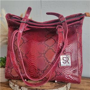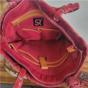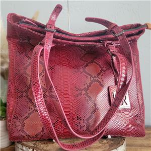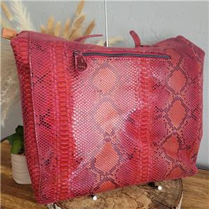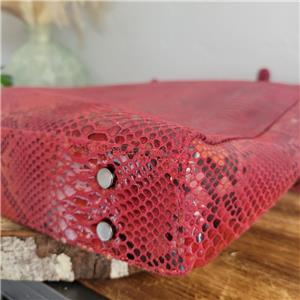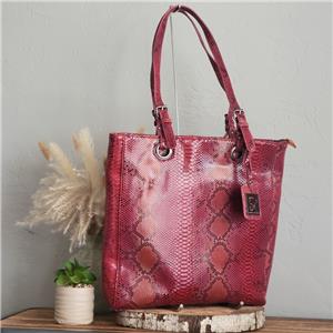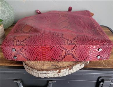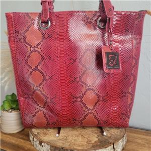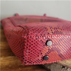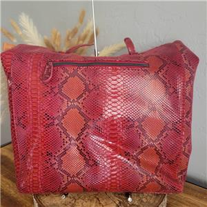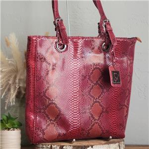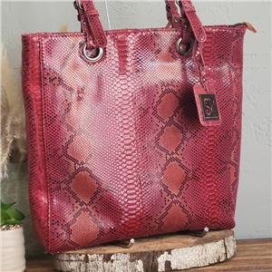 red color genuine leather tote satchel handbag shoulder bag embellished with exotic python snake print/ design.