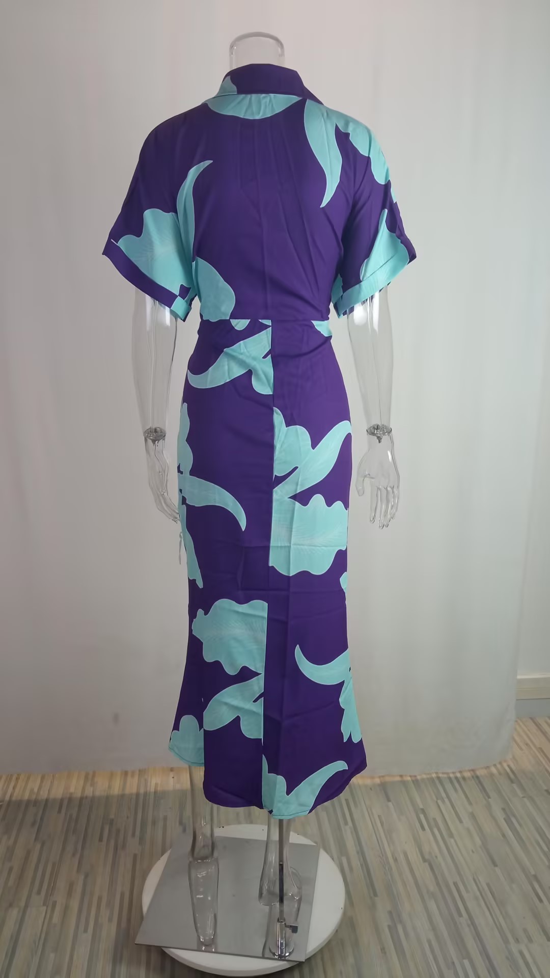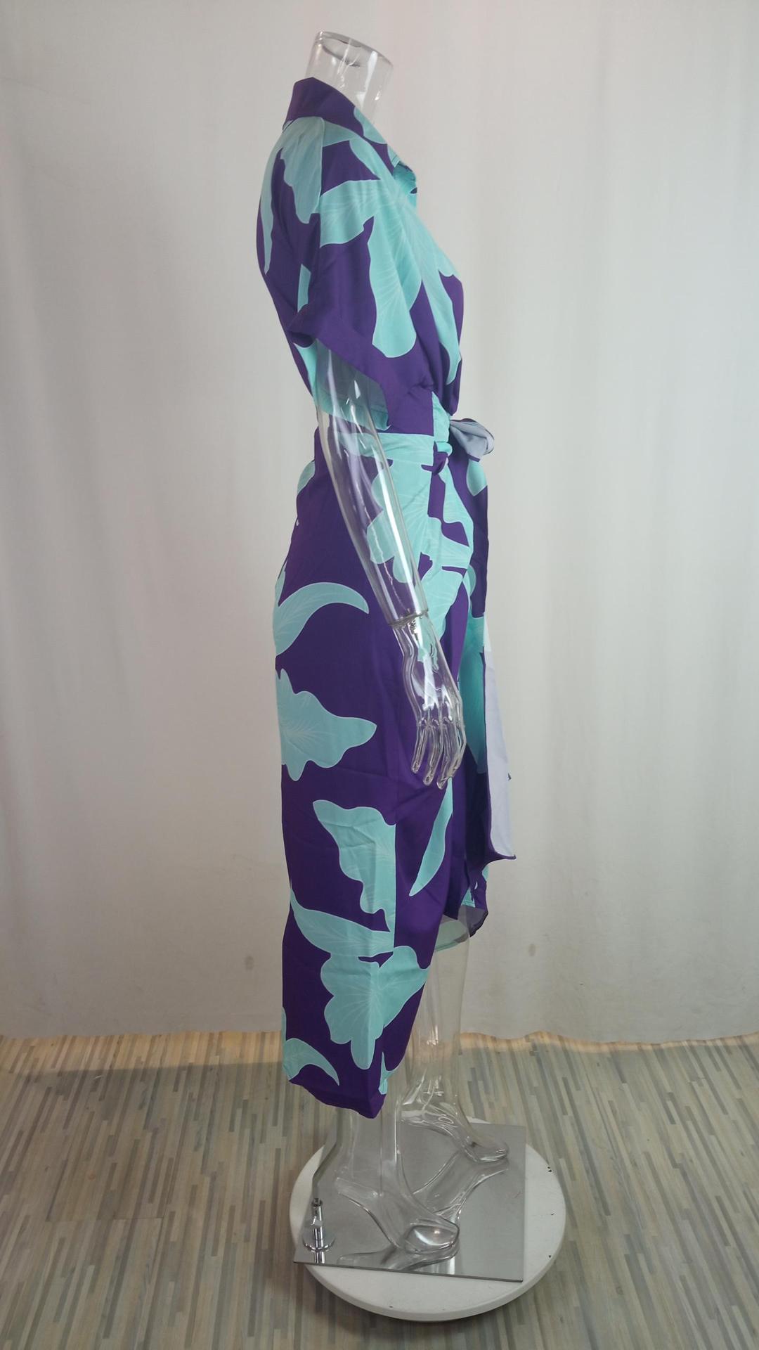 Embrace the summer season with elegance in this Cap Sleeve Lace Up Women's Beach Dress. Featuring a flattering irregular V-neck design, this dress combines a business-like aesthetic with a touch of party flair. The intricate floral pattern adds a playful, yet sophisticated touch, perfect for various occasions from work events to beachside gatherings.